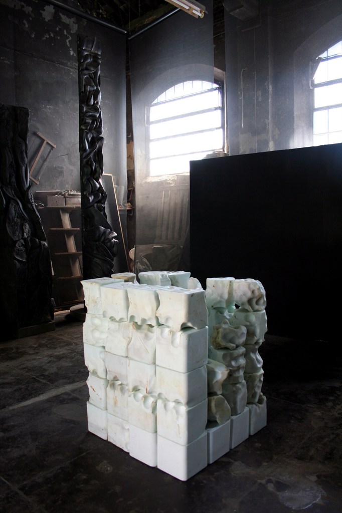 C. L.: Direi di sì, l’aspetto narrativo è importante. Come un romanzo sempre in evoluzione a cui aggiungere un nuovo tassello ad ogni capitolo. Si percepisce il contenuto facendo fluire la narrazione. La stessa narrazione poi corre a pari passo con un altro fattore determinante, ovvero lo scorrere del tempo. Penso che un lavoro debba essere letto in più tempi partendo dal contesto installativo, passando ai materiali, ai dettagli che lo compongono, ai contenuti latenti, … . Ci stiamo abituando a guardare tutto con velocità per cui la conquista più grande è fare sì che, chi fruisce del tuo lavoro, resti con esso il più possibile. Trovo che il lungo processo di realizzazione di un’opera sia importante quanto il risultato finale perché è utile a stemperare gli impulsi che le hanno dato vita. E questo tempo si riflette direttamente sulla sua lettura, che necessita di più sguardi, più livelli di riflessione, di tempi prolungati. In realtà la mia priorità non sta nel fatto che un allestimento possa essere immediatamente compreso, piuttosto mi interessa creare uno stato di tensione. Questo porta chi ne fruisce a tenerlo con sé anche dopo l’esperienza visiva, comporta domande, provoca il desiderio di una riflessione più profonda, pesca nell’inconscio. Un esempio può essere “Lapped Rocks” (2017) un’installazione in cui cubi di mangime minerale sono stati modificati dagli animali in base al tempo di permanenza con essi. Questo tipo di mangime è leccato dal bestiame in stalla per attingere all’apporto di sali minerali necessari al sostentamento L’elemento cardine è quindi il tempo di stasi dei blocchi con l’animale e il mio ruolo è stato quello di ponderare questo tempo. La dimensione narrativa in questo caso è davvero importante, tutto porta alla dilatazione temporale, ad un qualcosa all’apparenza eterno o ciclico.