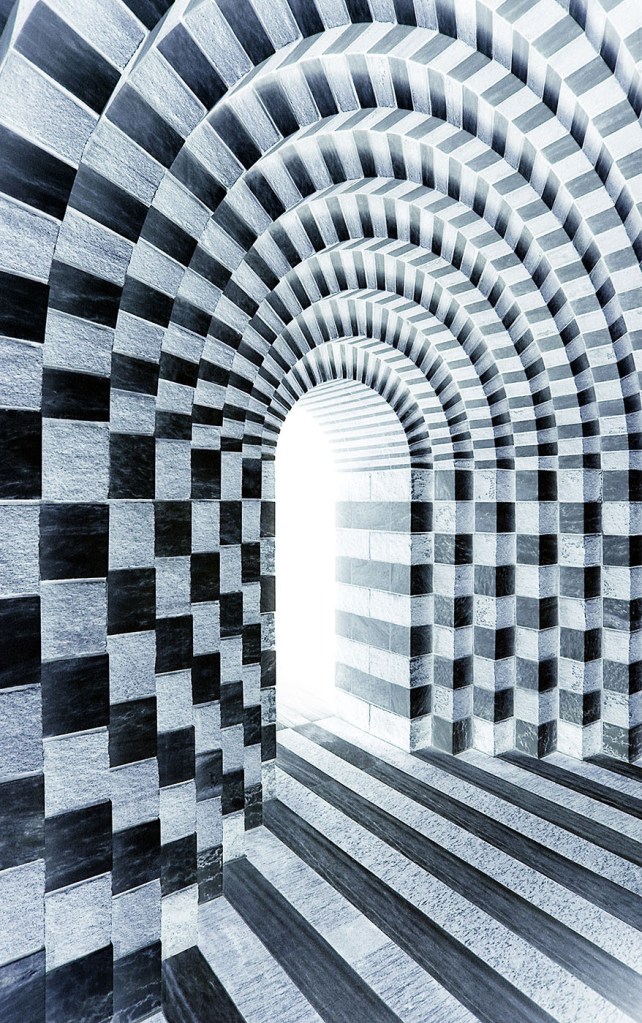 Nelle immagini architettoniche riconosco la soglia in luoghi reali che interpreto come modelli di realtà: quel limite tra interno ed esterno, presenza e assenza, qui e altrove in grado d’indicare strade, esperienze e alterità possibili. Sono luoghi di transizione che connettono e separano, visioni simultanee d’interno ed esterno. La soglia è un confine che si affaccia su due mondi, dei quali l’uno non potrebbe esistere senza l’altro. Ciò che unisce, separa.