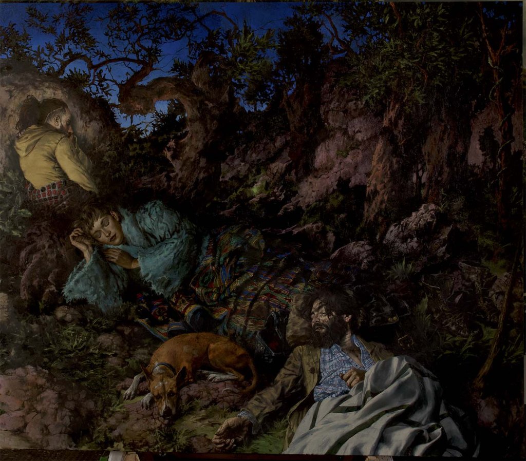Giacomo, Giovanni e Pietro addormentati.2020 olio su tela cm 190×220 coll. Privata