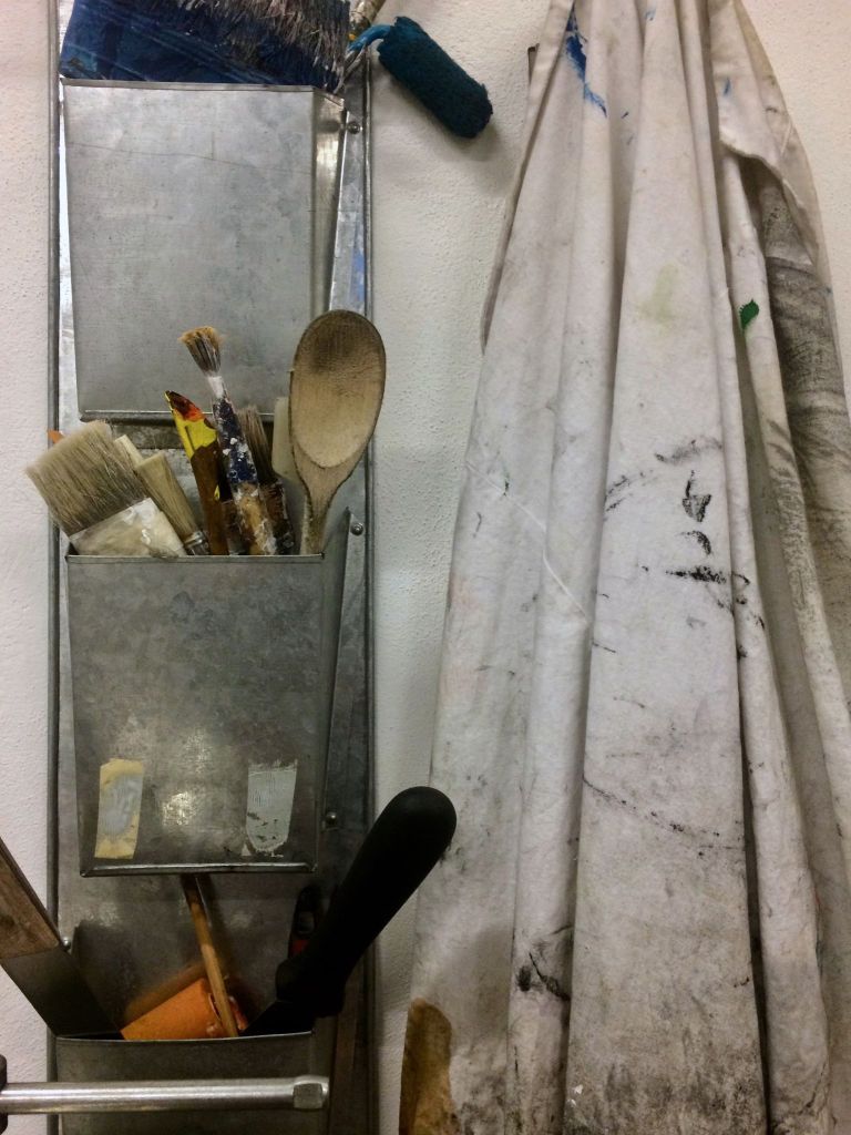 Al momento il mio studio è anche il posto in cui abito quindi ho un doppio legame che intreccia sfera personale e lavorativa. È uno spazio molto piccolo in cui tutto si incastra dando vita a un equilibrio precario tra ordine e caos. Prendermi cura del mio studio viene prima dei miei lavori, è il mio momento di raccoglimento.
