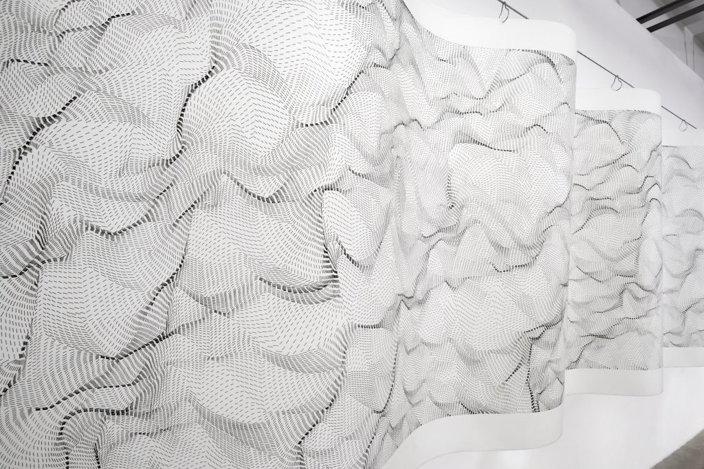 Gabriele Landi: questa caratteristica della ripetizione del segno si trova anche in alcuni lavori precedenti mi sembra, per esempio in mostra ci sono le “Costellazioni”, anche se ho l’impressione che nelle costellazioni per esempio ci sia una vena poetica che nei lavori successivi diventa altro, ho forse ho preso un abbaglio?