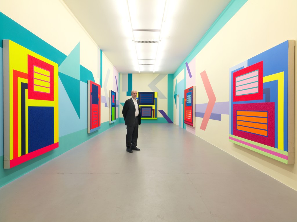Con me Mendini è sempre stato di una straordinaria, immeritata generosità. Devo a lui una delle mie più belle mostre con Peter Halley, da una sua idea. Dipinge tutta la grande stanza con i suoi modi e discute con Peter l’inserimento di sei grandi opere, da vedere, semplice mente straordinaria.