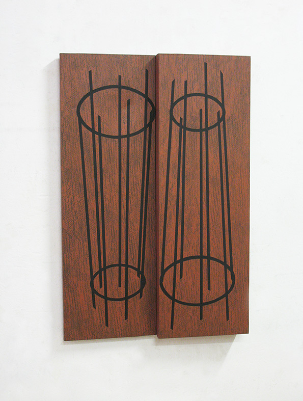 A.T.: Non c’era una vera intenzione di imitare vari materiali ma ormai quasi tutte le mie immagini pittoriche erano diventate rappresentazioni di strutture realizzabili in tre dimensioni, cosa che mi portò inevitabilmente ad abbandonare la pittura e a cercare invece il modo e i materiali più adatti per realizzarle affinché trasmettessero esattamente lo stesso significato che volevo darle in pittura.