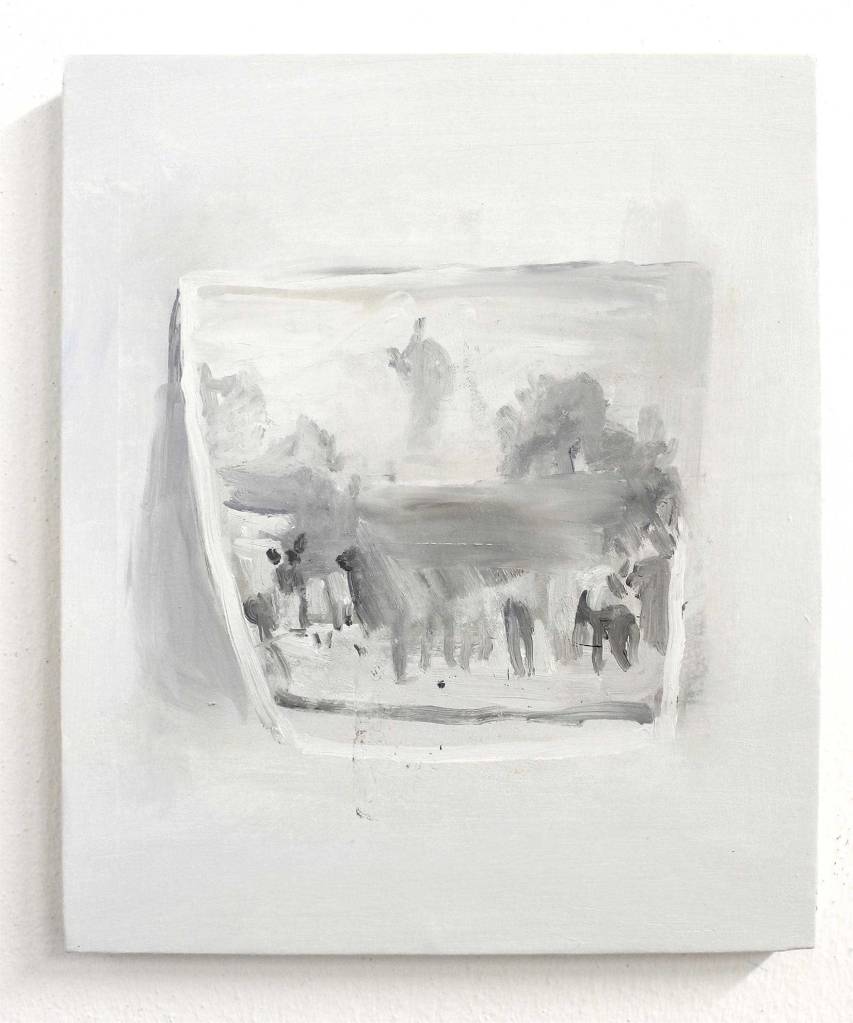 Cesare Biratoni: Gabriele, la tua è una domanda che tocca più aspetti del mio lavoro. Se intendi la luce nel senso della tonalità, allora mi rendo conto di non aver mai, o quasi, lavorato con colori scuri. E’ come se fosse una graduale e costante tensione verso il bianco del foglio o della tela. Ho spesso immaginato dei quadri bui, ….ma alla fine non sono mai riuscito a realizzarli. Il bianco ritorna sempre, e gradualmente si dispone sul lavoro fin quasi a cancellare il soggetto. La cancellazione per me rappresenta una scelta quanto e forse più rilevante dell’atto del tracciare, o del dipingere, o del lasciare un segno di qualche cosa con qualsiasi mezzo. un altro aspetto è quello legato al processo; mi piace molto lavorare con la luce del proiettore e credo che inconsciamente io mi sforzi di raggiungere, con la pittura, quel grado di pulizia e di chiarezza. La luce bianca del proiettore e il bianco di titanio (meno freddo e meno stabile dello zinco) del colore a olio, sono….mi pare, uno la conseguenza dell’altro.