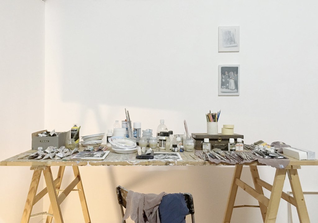 Cesare Biratoni: E’ una domanda alla quale non so rispondere in modo esauriente. Se intendi artisti della storia dell’arte il mio interesse cambia a seconda dei momenti, delle letture o delle sensazioni che sto vivendo in quel determinato momento; tendenzialmente è quasi del tutto indirizzato alla pittura e al disegno, ma mi piace molto la fotografia e ho interesse anche per diversi modi di espressione che non avrebbe senso elencare. Credo che sia importante studiare, anche nelle loro biografie ed eventualmente negli scritti, più artisti possibile, e mi sono quindi convinto che il mio modo di pensare all’arte si possa considerare un insieme di suggestioni e di sensibilità stratificate nella mia testa nel corso degli anni. Ma per cercare di essere meno vago adesso ti elenco in ordine sparso, così come stanno e senza nessun ordine, la serie di libri che si trova nell’ultimo scaffale di una delle mie librerie billy; sono tutti cataloghi perché pesano, e quindi li metto in basso, forse possono essere indicatori o raccontare qualche mia suggestione anche transitoria: joan Mirò, un catalogo su San Antonio de la Florida di Goya, Marlene Dumas, Balthus, due libri sui quaderni per le Domoiselles d’Avignon di Picasso, Savinio, Max Beckmann “Die Nacht”, Beppe Devalle “Santiprofetimartiri”, “Drawing Course” di Charles Bargue, Alice Neel “Drawings and watercolours”, Philip Guston “Retrospective”, Giorgio Morandi 1890-1964, Seurat, Walid Raad “Scratching on things I Could Disavow”, Gerhard Richter “Ubermalte Fotografien”.