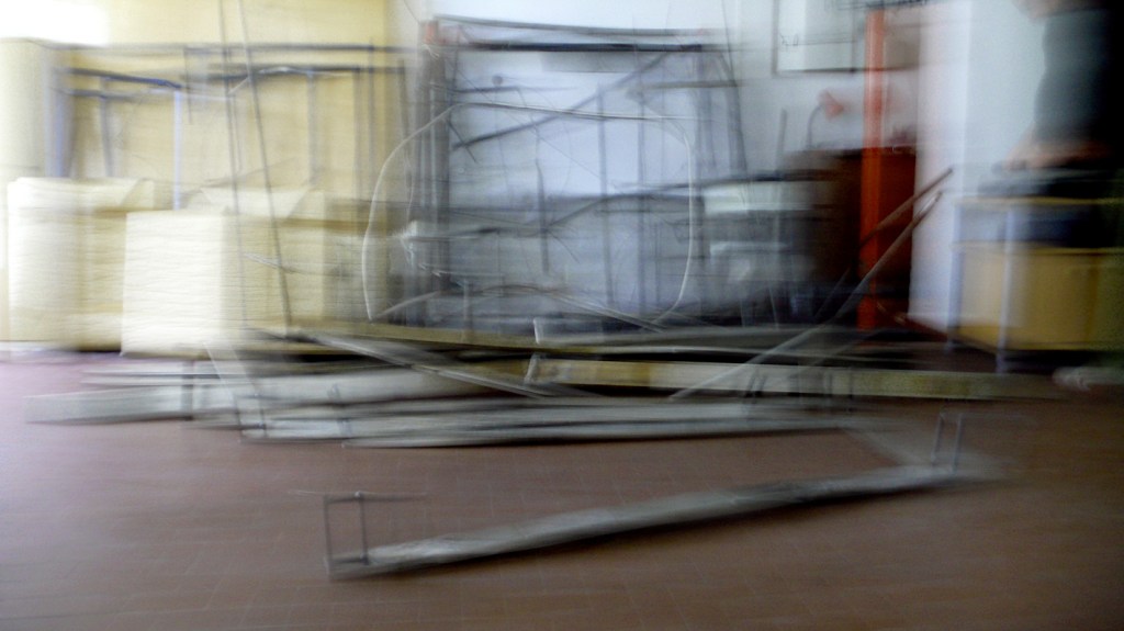 Esso è costruzione dello spazio dell’opera e dell’altrui percezione, identifica strutture dalla sintesi mutevole tra scultura, pittura, architettura abitate dal pensiero, un pensiero del vuoto della vacuità con sconfinamenti dentro e fuori dai perimetri… là l’equilibrio diviene funambolico….. al limite estremo della stabilità.