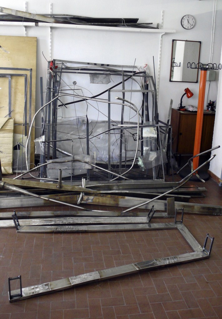 nella mente progetto cose, spazi, forme composite e scomposte in apparente confusione perché, nel mio modus operandi non v’è progetto in quanto tale… non sussiste ma, l’opera si ricostruisce in un work in progress di intuizioni, frammenti, visioni tra reale e pensiero.