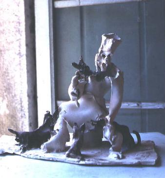 ” Strega con gatti”, 1994, terracotta, 38x42x34, collezione