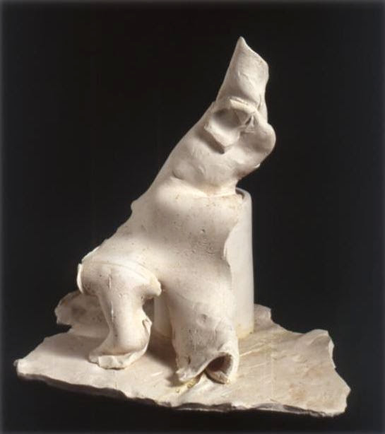 Paolo Fabiani: Nei primi anni ’90 ho lavorato prevalentemente nelle due dimensioni, anche se già facevo delle installazioni. La scultura vera e propria è comparsa attorno al ‘ 92 con un exploit alla mostra di Luciano Pistoi a Volpaia dal titolo Splendente. Esposi delle figurine in argilla cruda e in gesso ispirate alle icone di Alessandro Magnasco pittore del 700 genovese… Saltimbanchi, Pulcinella, Cantastorie, streghe, tutti soggetti di quella che viene definita pittura di genere. La scultura in quegli anni era per me come l’alter ego della pittura, poi ha preso sempre più campo, mi è entrata nel sangue, come un organismo che lentamente colonizza un altro; la scultura è entrata in me attraverso un processo simbiotico e per cosi dire, ha rosicchiato lentamente il campo soppiantando poi la pittura