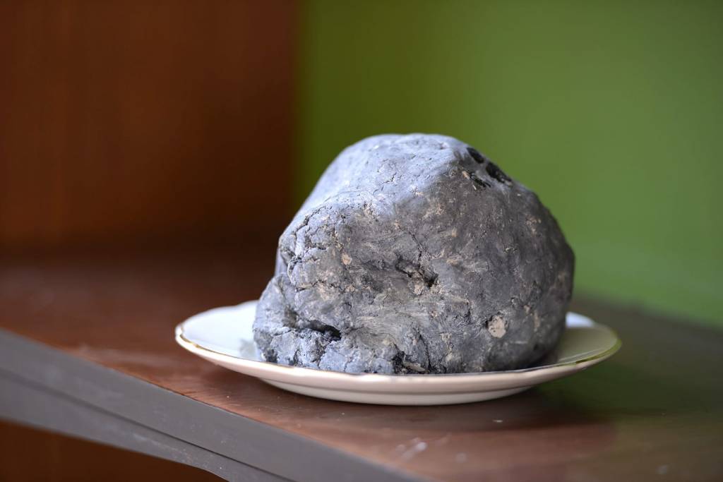 Il lavoro Omo nero, (testa abbozzata di stucco grigio scuro, posta sopra un piattino di fine porcellana) rappresenta l’atto di recidere una volta per tutte il legame col male, tagliandogli la testa. Ho in mente, da un punto di vista solo della rappresentazione, l’iconografia del banchetto di Erode al quale viene presentata la testa del Battista, in un piatto d’argento e anche una famosa foto di un giovanissimo Damien Hirst, ritratto sorridente accanto ad una testa tagliata scattata in obitorio.
