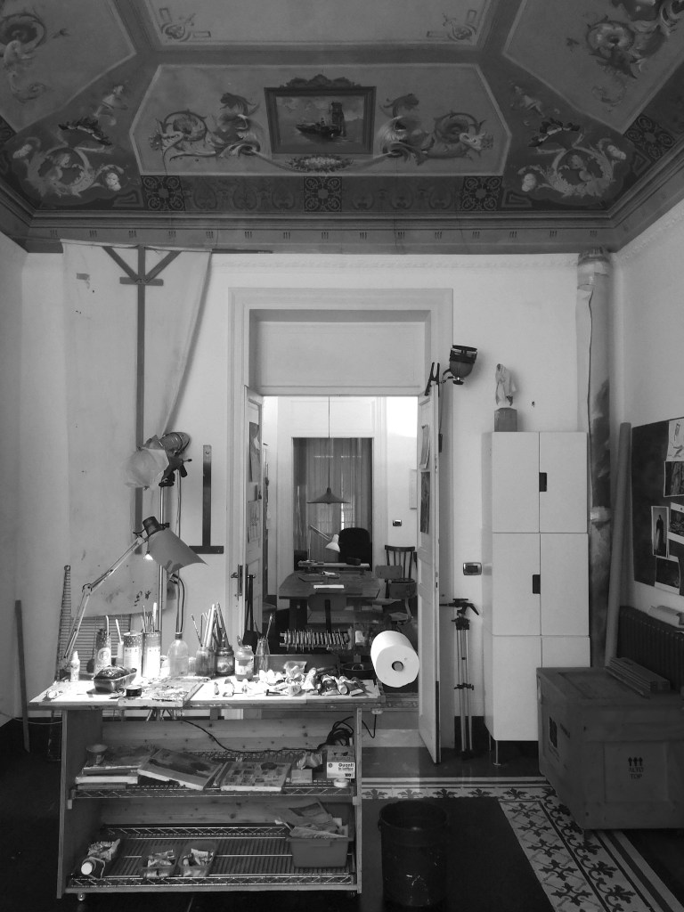 Il mio studio consiste in quattro stanze di un appartamento primi del novecento situato in una zona abbastanza centrale di Palermo ma non troppo per essere nell’occhio della movida e della ztl, uscendo dal portone a destra si entra al mercato del capo e a sinistra a pochi passi ci si ritrova nel salotto chic della città.