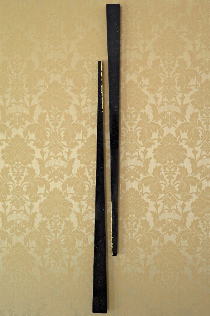 Casa-Atelier Parra,Bladelight Concert Monumentale II e III, 2020, Granito nero e Azul Bahia con foglia oro su lastra in acciaio e base in Travertino e Bardiglio, cm 220x52x50