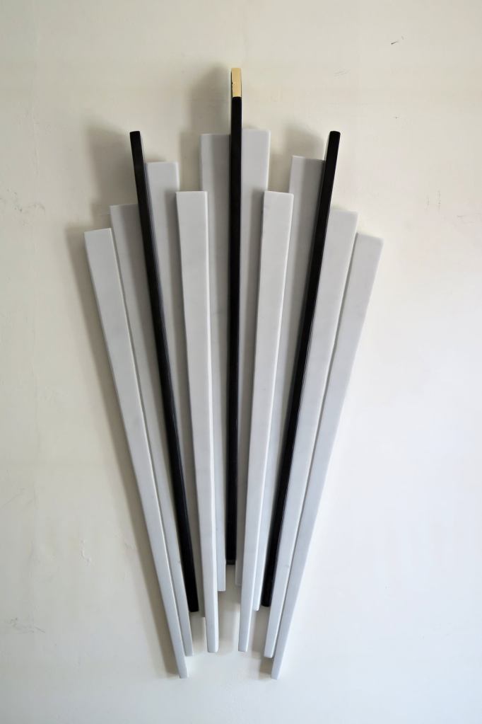 Bladelight Concert II, 2019, marmo bianco Carrara, nero Belgio e foglia oro, cm 113x56x7