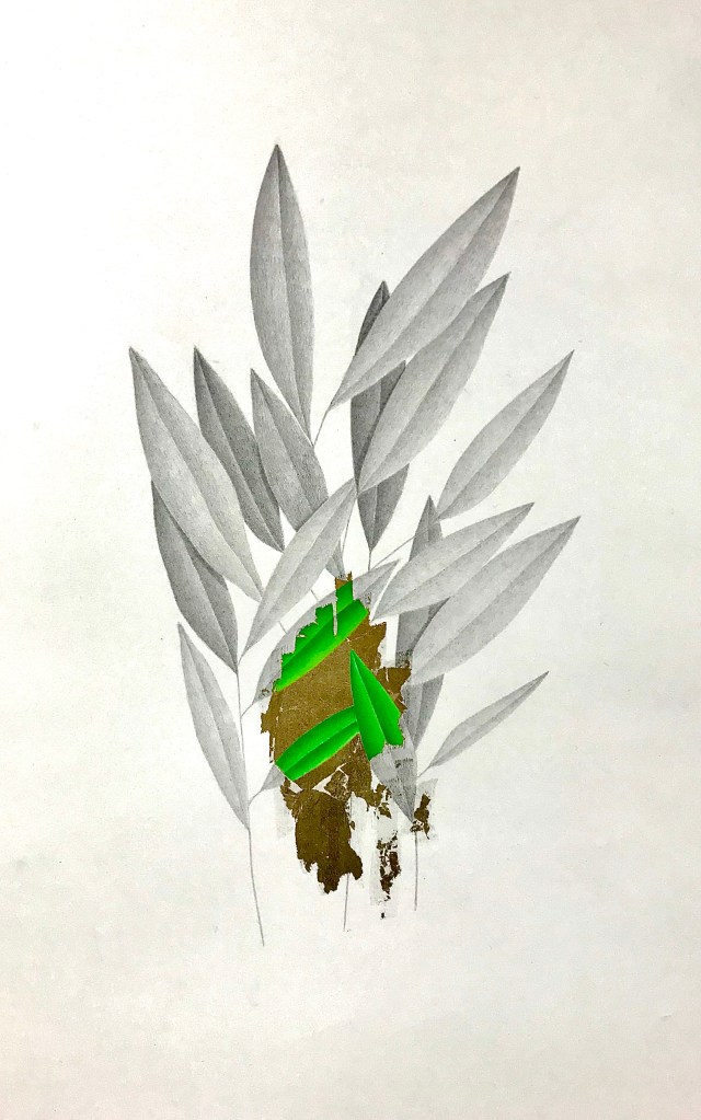 FOGLIE 2017/20 grafite, foglia d’oro e tecnica mista su carta cm 50×70