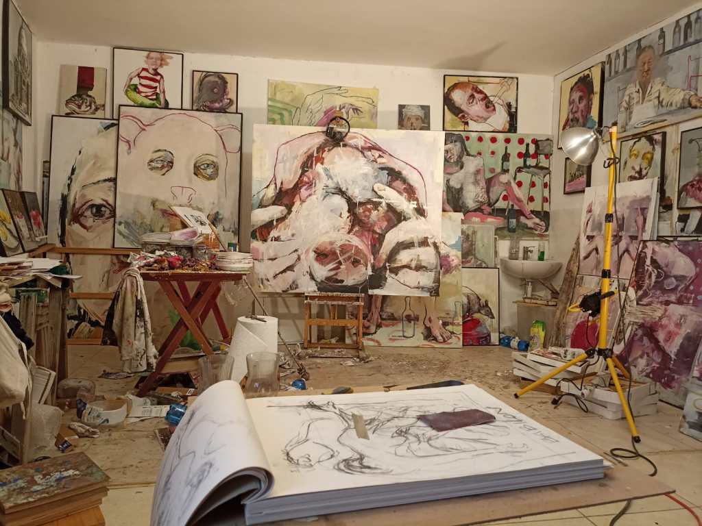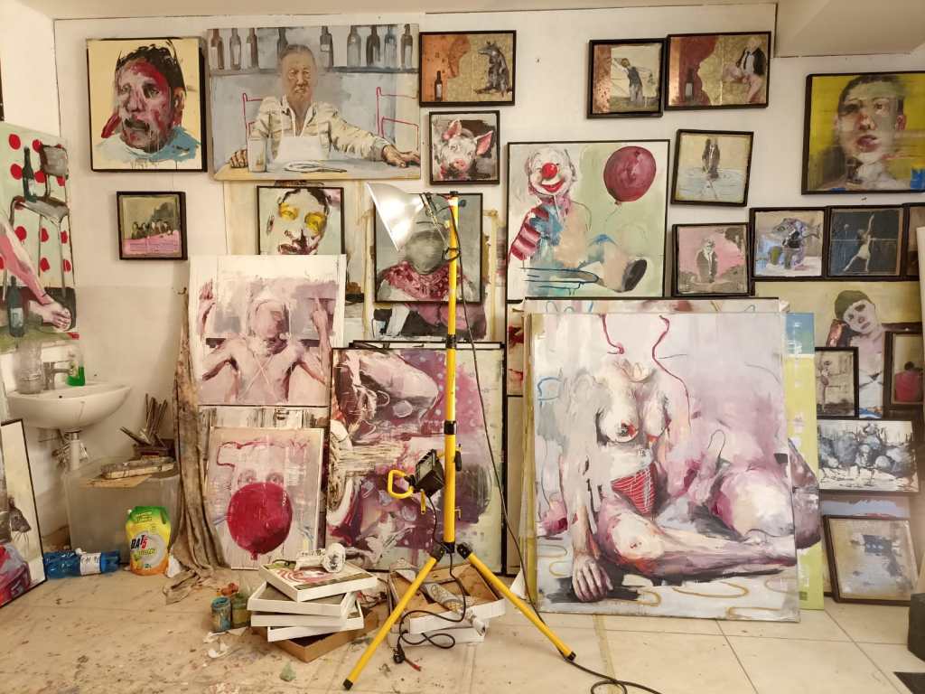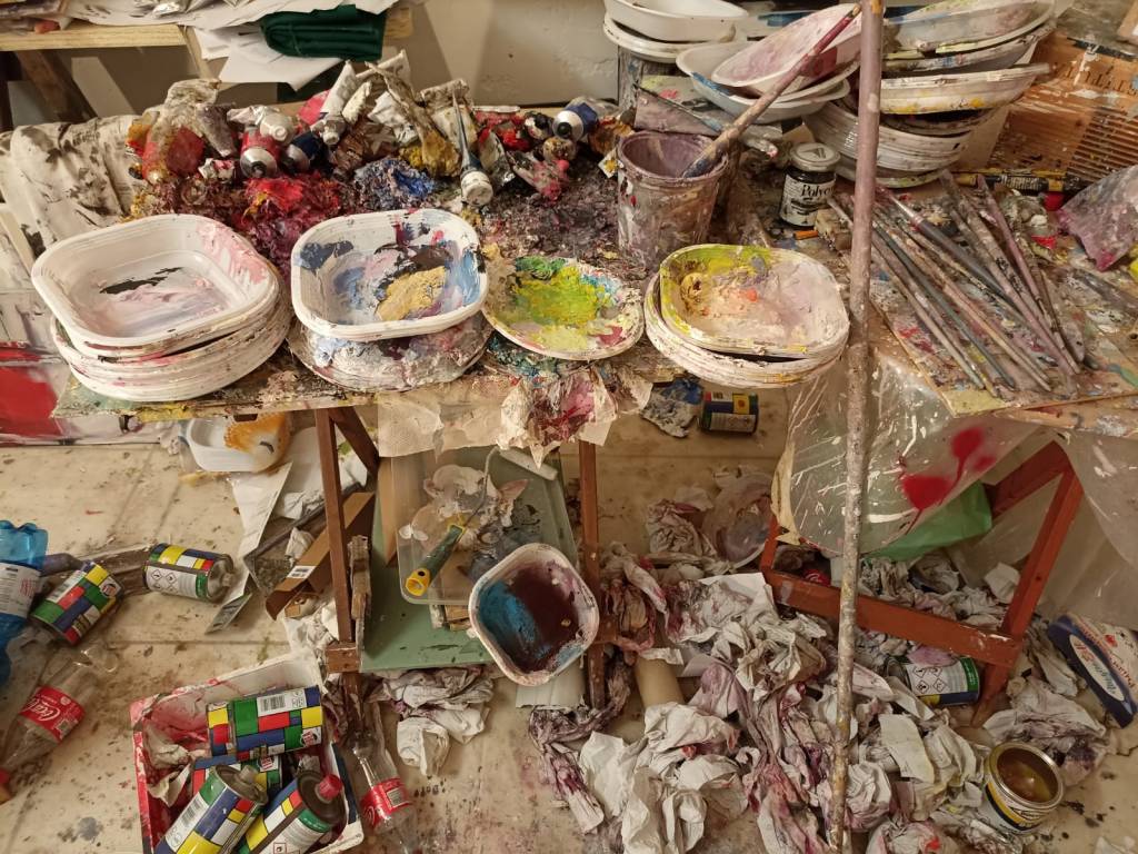 Caro Gabriele, che dire…Lo studio per me è il luogo per eccellenza, una sorta di tana del topo dove porto dentro di tutto: pensieri, progetti, sogni ed altro. Qui li spargo in giro, li lascio decantare cercando di ricomporli quando non sono chiari. C’è un meraviglioso casino, oggetti di ogni genere, sculture, bozzetti e dipinti: ogni cosa è presente per essere lavorata, rielaborata o per suggerirmi altro. Tutto serve, tutto è necessario. Lo studio è, soprattutto, il luogo dove trascorro la maggior parte del mio tempo, una sorta di santuario dove riesco a concentrarmi e trovare la connessione tra il pensiero e il fare.