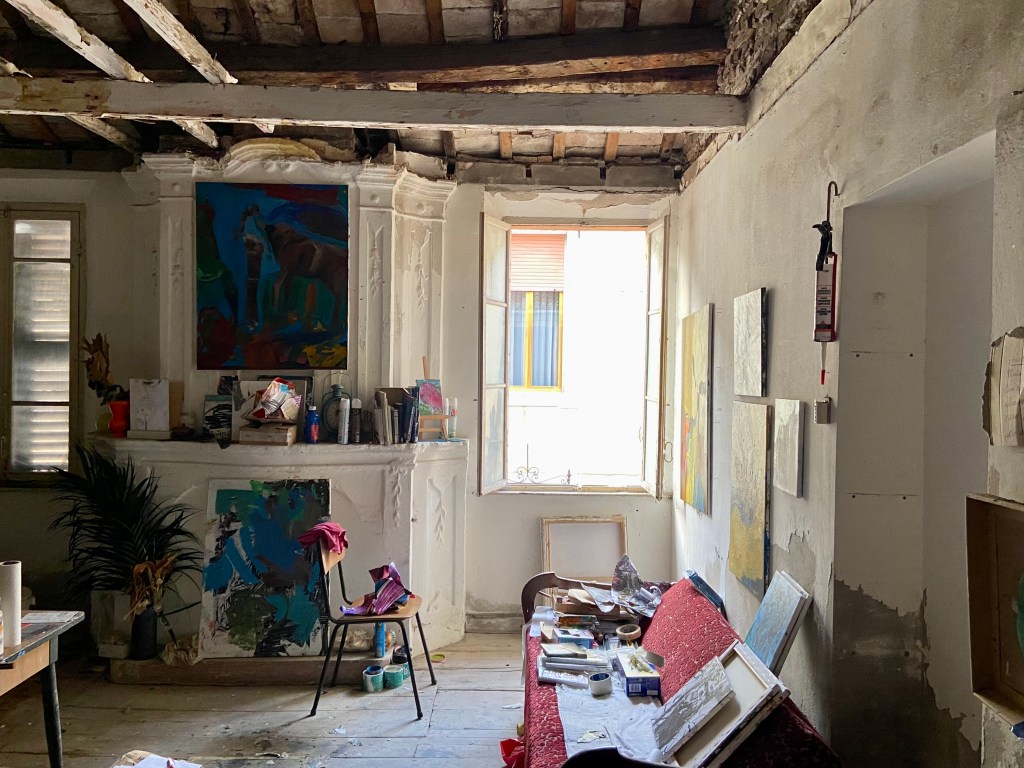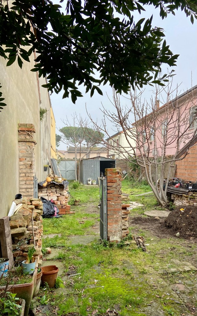Lo studio presso il quale lavoro non è altro che un rudere degli anni ‘60, situato a pochi metri dalla mia abitazione, nel centro storico di Comacchio; è disabitato da decenni, è privo di corrente elettrica, non esiste più il solaio ma c’è un grande e verdeggiante giardino.