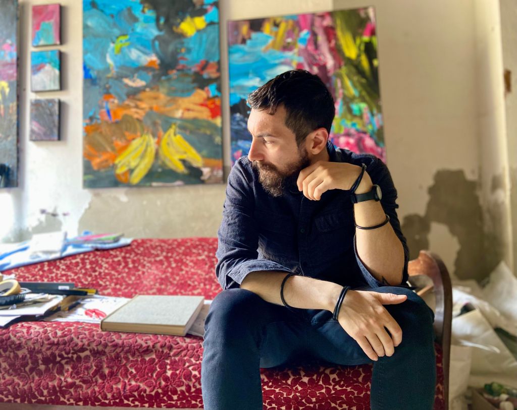 Per questo sono convinto che lo studio è parte stessa dell’opera e della sua creazione; l’ubicazione, l’orientamento, perfino il tipo d’aria che vi si respira sono elementi che influiscono sulla composizione dei miei lavori. Fino ad alcuni anni fa lavoravo in uno studio molto più piccolo, questo mi portava ad agire in modo differente e quindi a produrre lavori molto differenti; questo nuovo studio invece ha determinato immediatamente un cambiamento nel mio linguaggio. Sarà forse per via della scarsità o quasi totale assenza di luce, ora dipingere “quasi al buio” mi permette di far prevalere il tatto su gli altri sensi (schiaccio, sfioro, strappo, tocco) e mettere su tela non solo ciò che vedo, ma ancora meglio ciò che immagino, qualcosa che si rivela appieno solo il giorno dopo, in piena luce. Sono sicuro che alcuni lavori, se non fossero stati eseguiti lì, non sarebbero proprio nati, esistiti.