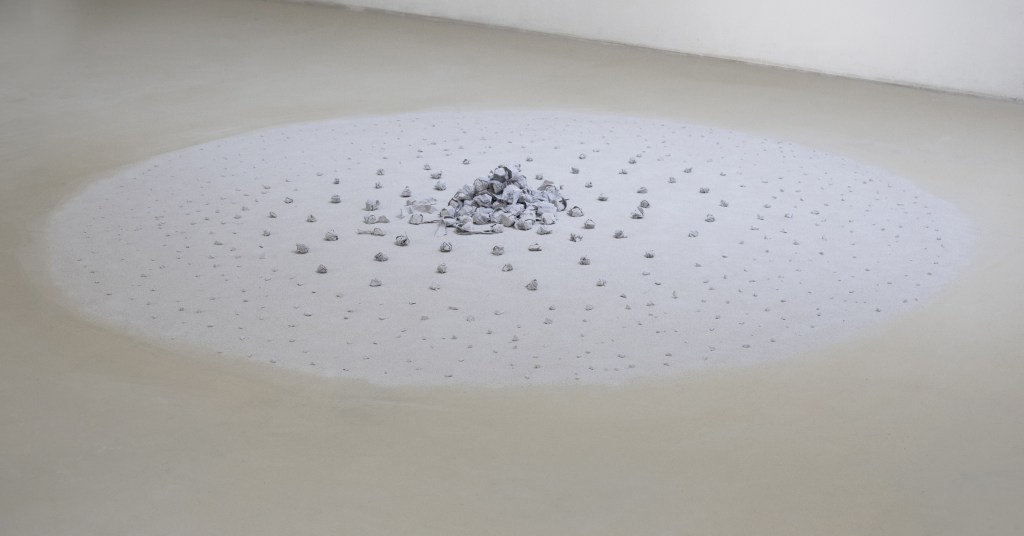 Giulia Spernazza: Esso trascorre inesorabile testimoniando l’impermanenza di ogni cosa ma i ricordi sono sempre vivi e presenti in noi, il bagaglio delle esperienze contribuisce alla nostra costante evoluzione come esseri umani. Dal 2020 la mia ricerca è incentrata sul concetto di casa come luogo simbolo di relazioni affettive ed il tempo in questo caso è strettamente legato alla memoria. Mettendo in relazione materiali presi dall’edilizia, come cemento e calcestruzzo, con indumenti e accessori, intendo richiamare un ideale spazio fisico e le esperienze stratificate delle persone che lo hanno abitato. Ogni elemento immerso nel cemento bianco viene cristallizzato e sottratto al trascorrere del tempo, all’identificazione di caratteristiche personali, con lo scopo di rendere il messaggio universale.