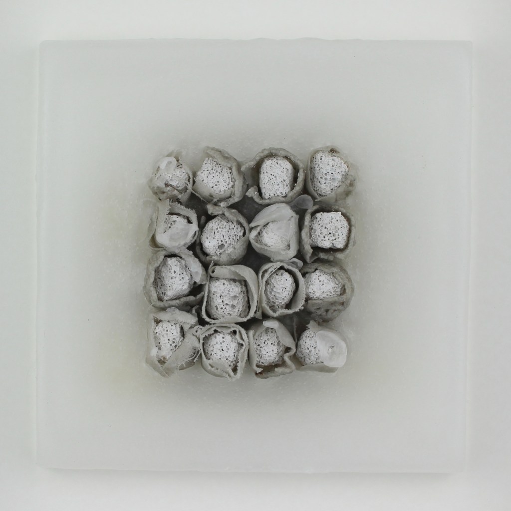 Spernazza, Untitled, 2022. Paraffina, siporex e tessuto cerato 30 x 30 x 5 cm.