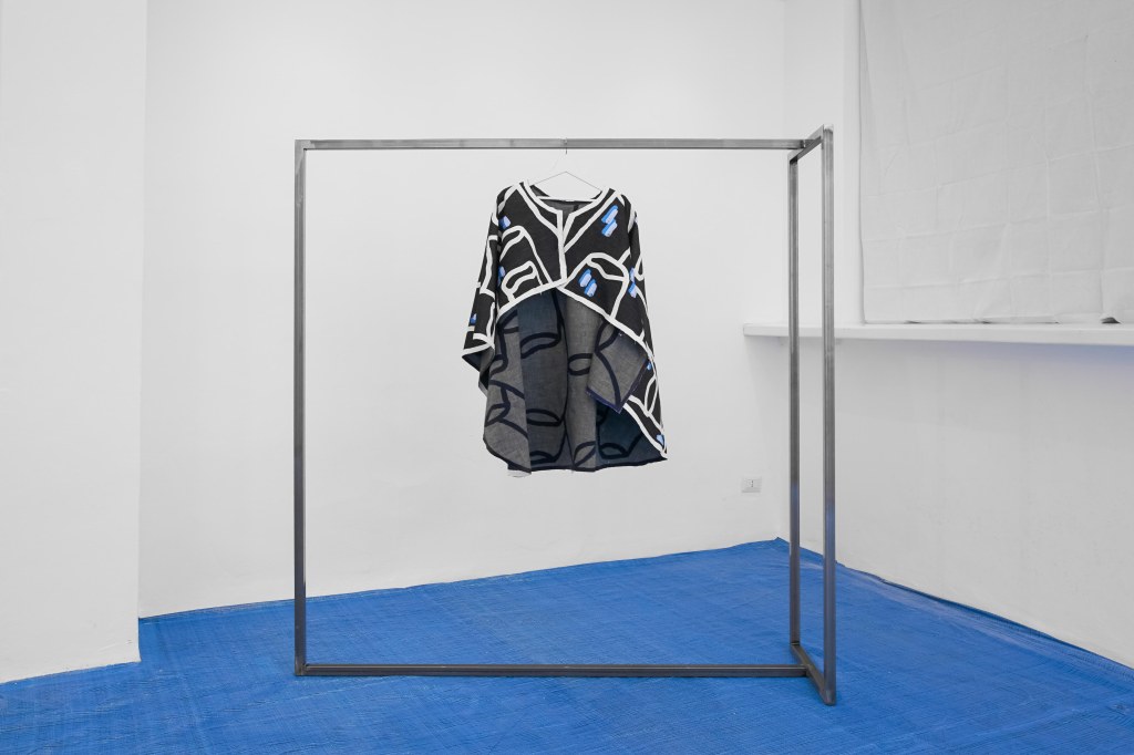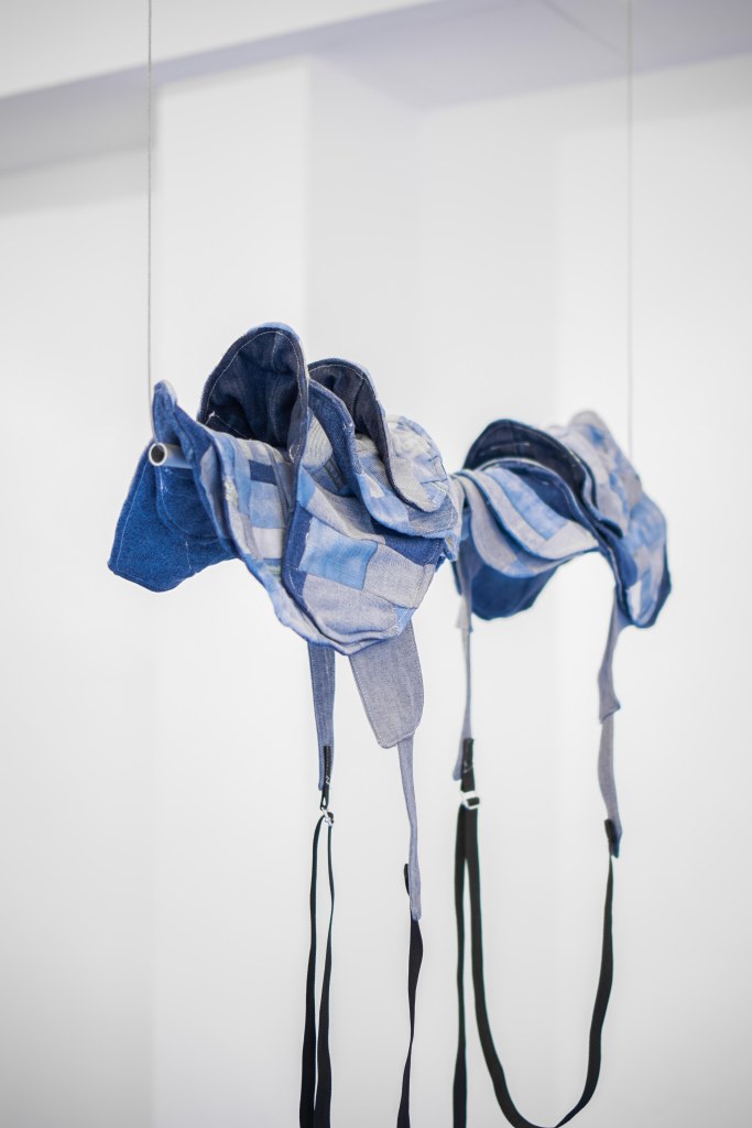 Pluvio,2022, plaster e acrilic on denim, 100 x 45 x 10 cm. BORO 2022. MIori Showroom. Courtesy State Of and the artist. Photo Credits_ Crates