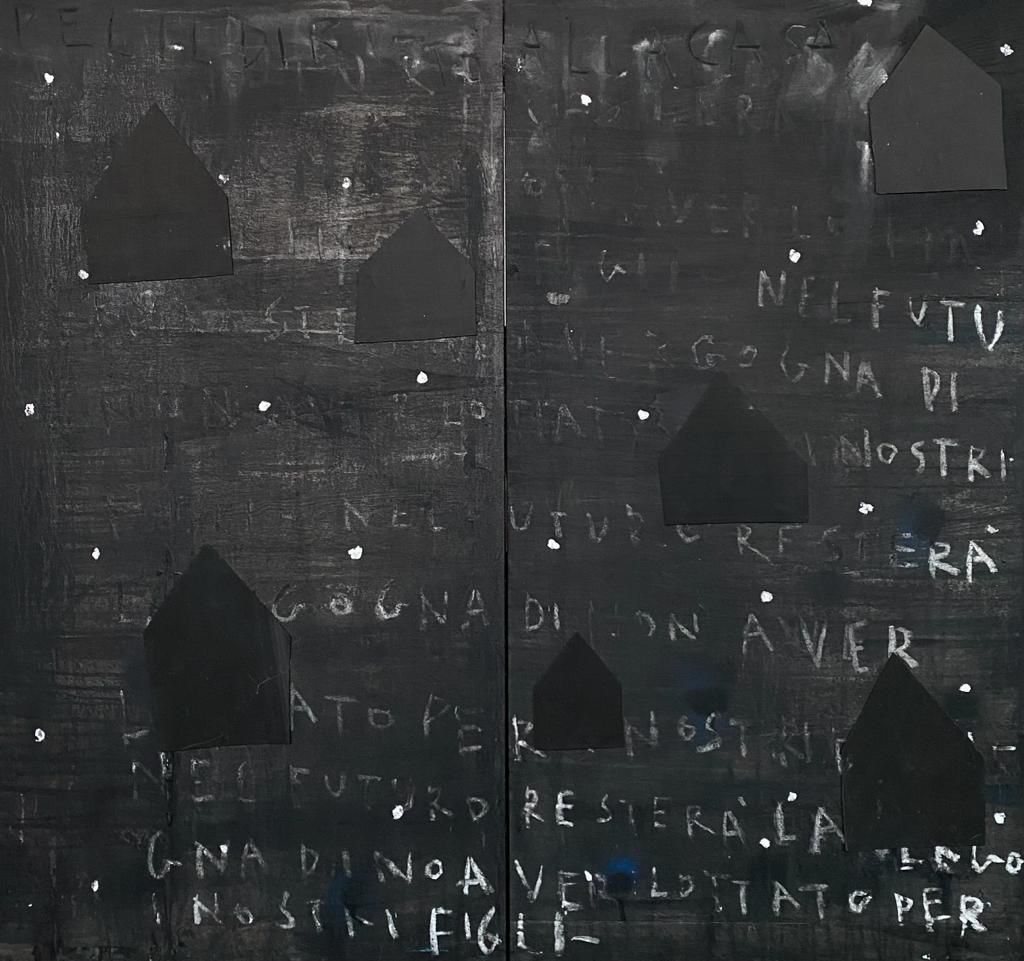 Sandro Mele: Il nero per me ha diversi significati. Il primo è una spiegazione da pittore: identifico il nero con l’idea di infinito, qualcosa che non è condizionabile, quindi pura libertà. Chiunque può guardare il cielo stellato e sentirsi libero. La seconda è ideologica: il colore che identifica storicamente il fascismo, con il quale tutti riconoscono questo fenomeno. Lo riconosco anche io che sono un antifascista ed è così anche per la nostra Costituzione. L’ultima è un guardare con sorriso il colore nero associato al rosso