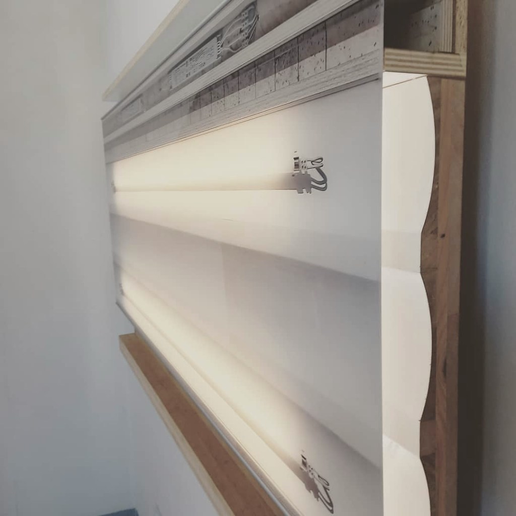Alluminio, policarbonato intrecciato, luci led, foto su plexy