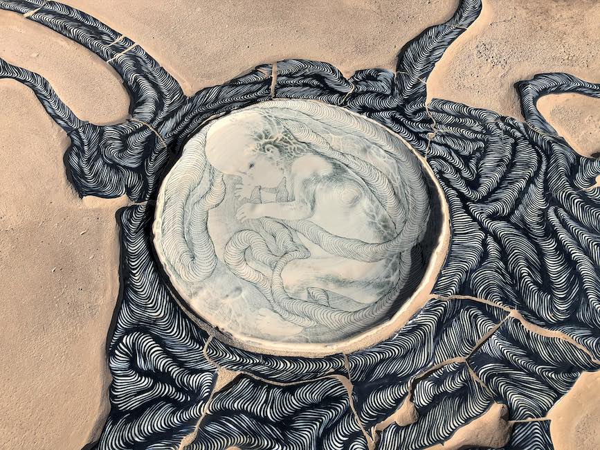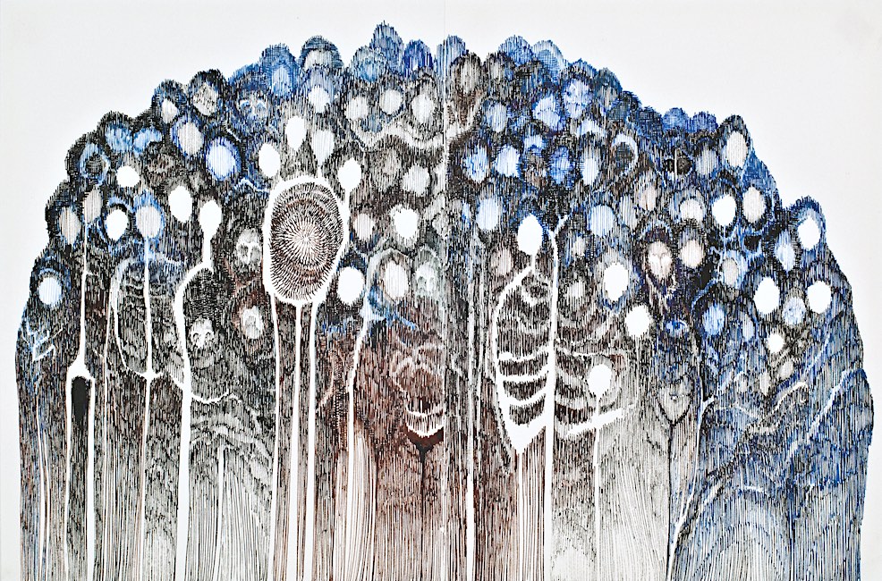 Over the years I have really explored many possibilities of expression through the accumulation of lines that from a small sheet of paper have extended onto large formats and different materials. I have drawn on papier-mâché sculptures, large-scale ceramics that extend into space, video animations and paintings on canvas, first with coloured pencils (reaching formats of up to 3×6 metres) and then with oil paint in which the line of the drawing instead of accumulating has etched and subtracted.