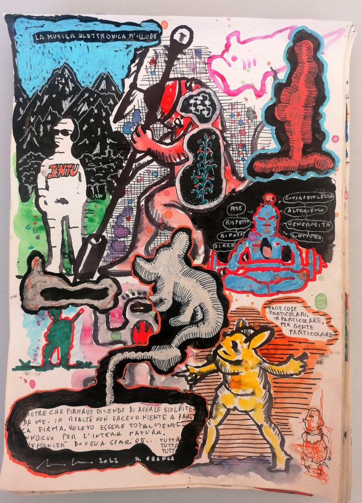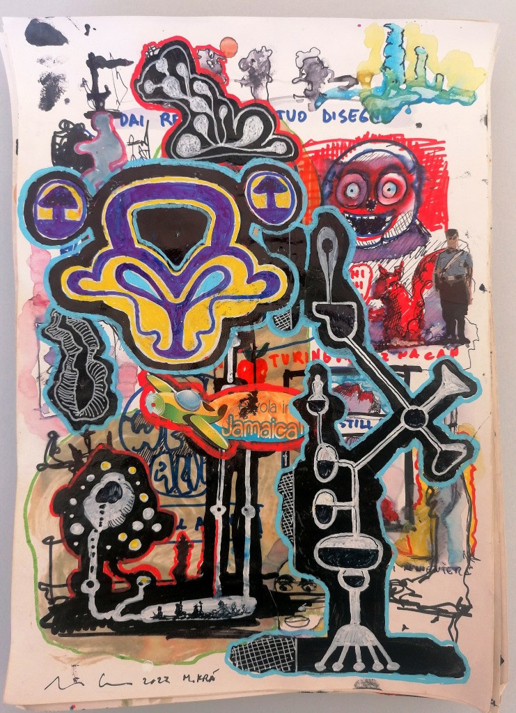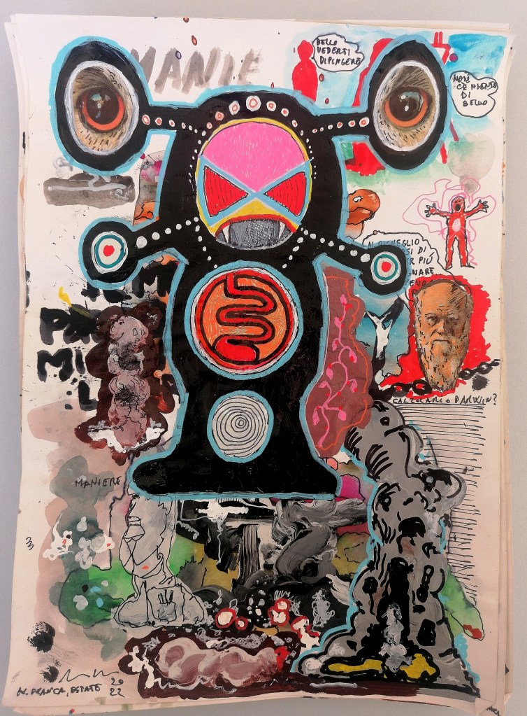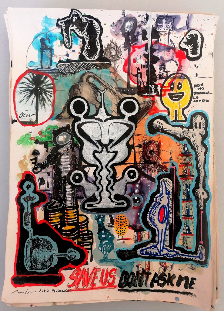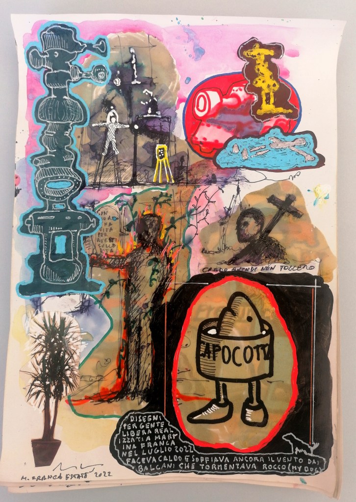 Mario Consiglio: Drawing is anarchic thought, the place where there are no more rules where heart and mind flow in total Dionysian freedom. We could speak of automatism like André Breton’s psychic automatism of the surrealist manifesto of 1924 if it were not for the century that separates us that has enriched us with techniques, concepts and new scenarios; after all, we are the sum of our visual knowledge that has been handed down to us by history. I draw when I am under stress, when I have too much energy, when I am afraid, when the world offends me and I need to let off steam, but also when I am happy. I go through short but intense periods where I lose myself in the sign chaos without really understanding what I am doing, trying to give order to the group. In practice I produce in series starting with one instrument for all the supports involved and gradually overlapping visions with other techniques. This is the only rational point of the whole work where gestural action then takes over from reason. Design drawing, on the other hand, is another practice I adopt especially when I design works with materials and installations; here discipline and rationality come into play because you are dealing with the concrete reality of the object and space. In conclusion, I think drawing is too devalued by most people Design drawing, on the other hand, is another practice that I adopt especially when I design works with materials and installations; here discipline and rationality come into play because you are dealing with the concrete reality of the object and space. In conclusion, I think drawing is too devalued by most people. The sign is the electrocardiogram of artists, the most secret and purest part that only experts can read. As for realistic (academic) drawing, if it is not accompanied by deep-rooted individual characteristics and valid concepts, it risks becoming pure virtuosity that has little to do with art. Expressing our instinctive side with signs, on the other hand, highlights our uniqueness. Learning to be free takes longer than learning to paint a good portrait. It implies dedication, madness, stubbornness, humility, irony, courage, self-criticism and blind faith . Only then can you attempt to express your own truth .