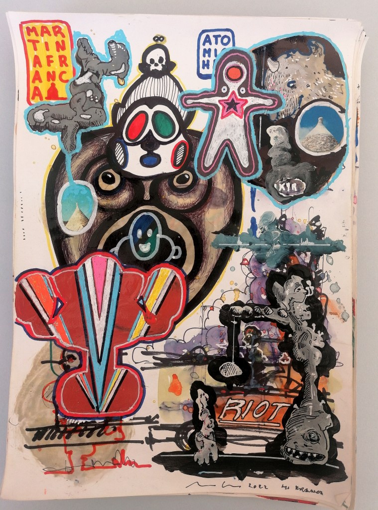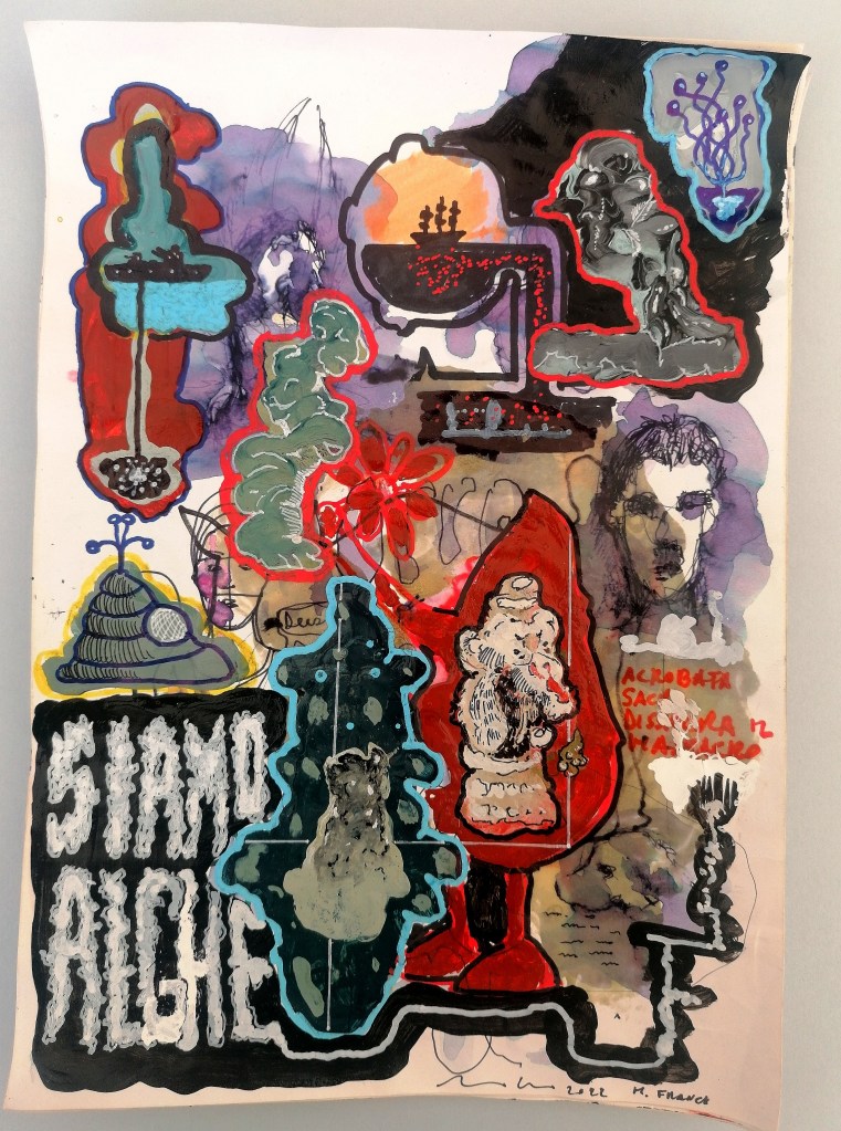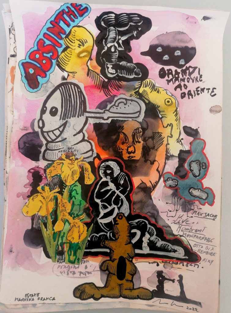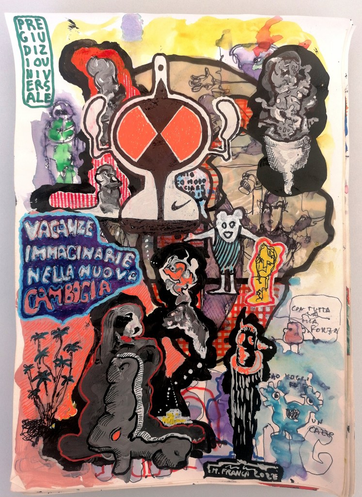 Mario Consiglio: Drawing is anarchic thought, the place where there are no more rules where heart and mind flow in total Dionysian freedom. We could speak of automatism like André Breton’s psychic automatism of the surrealist manifesto of 1924 if it were not for the century that separates us that has enriched us with techniques, concepts and new scenarios; after all, we are the sum of our visual knowledge that has been handed down to us by history. I draw when I am under stress, when I have too much energy, when I am afraid, when the world offends me and I need to let off steam, but also when I am happy. I go through short but intense periods where I lose myself in the sign chaos without really understanding what I am doing, trying to give order to the group. In practice I produce in series starting with one instrument for all the supports involved and gradually overlapping visions with other techniques. This is the only rational point of the whole work where gestural action then takes over from reason. Design drawing, on the other hand, is another practice I adopt especially when I design works with materials and installations; here discipline and rationality come into play because you are dealing with the concrete reality of the object and space. In conclusion, I think drawing is too devalued by most people Design drawing, on the other hand, is another practice that I adopt especially when I design works with materials and installations; here discipline and rationality come into play because you are dealing with the concrete reality of the object and space. In conclusion, I think drawing is too devalued by most people. The sign is the electrocardiogram of artists, the most secret and purest part that only experts can read. As for realistic (academic) drawing, if it is not accompanied by deep-rooted individual characteristics and valid concepts, it risks becoming pure virtuosity that has little to do with art. Expressing our instinctive side with signs, on the other hand, highlights our uniqueness. Learning to be free takes longer than learning to paint a good portrait. It implies dedication, madness, stubbornness, humility, irony, courage, self-criticism and blind faith . Only then can you attempt to express your own truth .