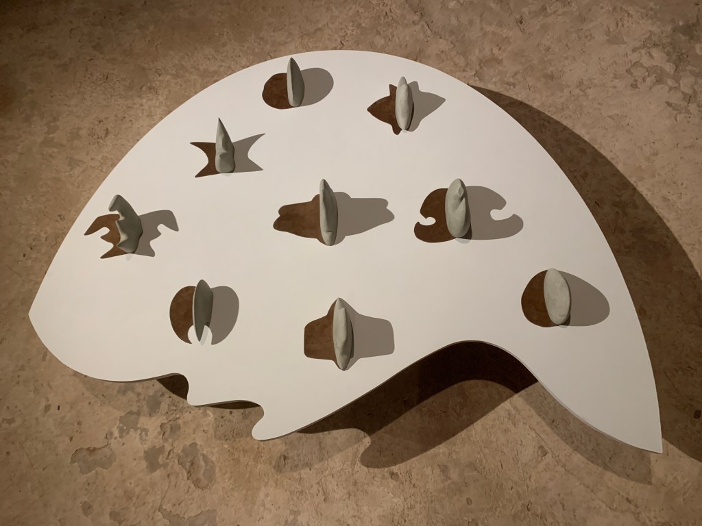 Rachel Morellet : L’opera esplora il confine tra la forma e la materia ed è nata durante l’anno 2020, mentre vigevano le regole di isolamento che conosciamo tutti. Decisi di prendere in mano qualche chilo di argilla che conservavo da mesi, e alcuni disegni che avevo fatto nel 2014. Mi misi ad inventare e a dare forma a diciassette sculture diverse, “per via di levare” la materia, processo che di solito in ceramica viene fatto “per via di porre”.