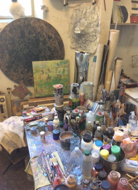 Come artefice della mia esistenza, in base alla mia sensibilità, creo anche quello che mi circonda attraverso quello che penso. Quando mi hai posto la domanda : “quale è il rapporto che ti lega al tuo studio?” invitandomi a produrre un breve scritto ho subito visto intimamente legati il luogo e la persona. Lo spazio in cui quotidianamente lavoro é da me vissuto come una estensione del mio corpo, il luogo che supporta e amplifica l’esperienza e la conoscenza della perpetua trasformazione durante il lavoro. Il mio atelier é il luogo che apre all’ascolto del mondo e ne supera gli aspetti ordinari andando oltre. L’atelier mi permette di rendere la mia attività performance continua della mia ricerca, una ricerca che astrae e fa emergere un linguaggio universale partendo da un dato soggettivo e personale. Lo spazio dove lavoro sostiene il processo che intercorre tra il pensiero e il fare attraverso la folgorazione di sensazioni e consapevolezze. Arrivare ad una fase di consapevolezza durante il “sentire” unisce il tempo alla propria sensibilità che si carica di energie e suggerimenti lungimiranti. In un certo qual modo innesca anche un meccanismo di “interruzione”del tempo ordinario per aprirsi ad un nuovo modo di vedere quello che ti circonda e fermare “fotogrammi di sensibilità “ a testimonianza del processo di contemporaneitá che scorre, futuro seme di processi creativi simili. In estrema sintesi il mio spazio di lavoro é un’insostituibile strumento che catalizza tutto il mio fare.