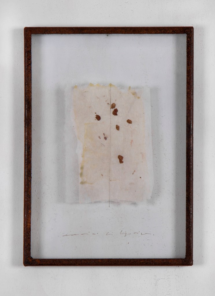 Carta di riso, grafite, pigmenti, vetro, ferro