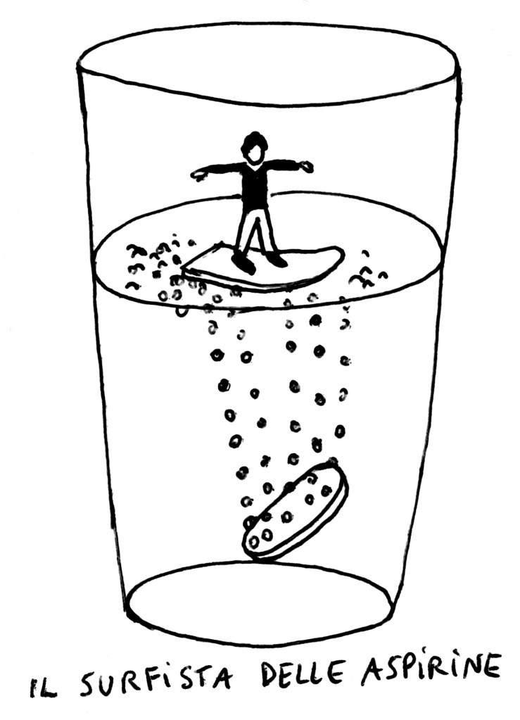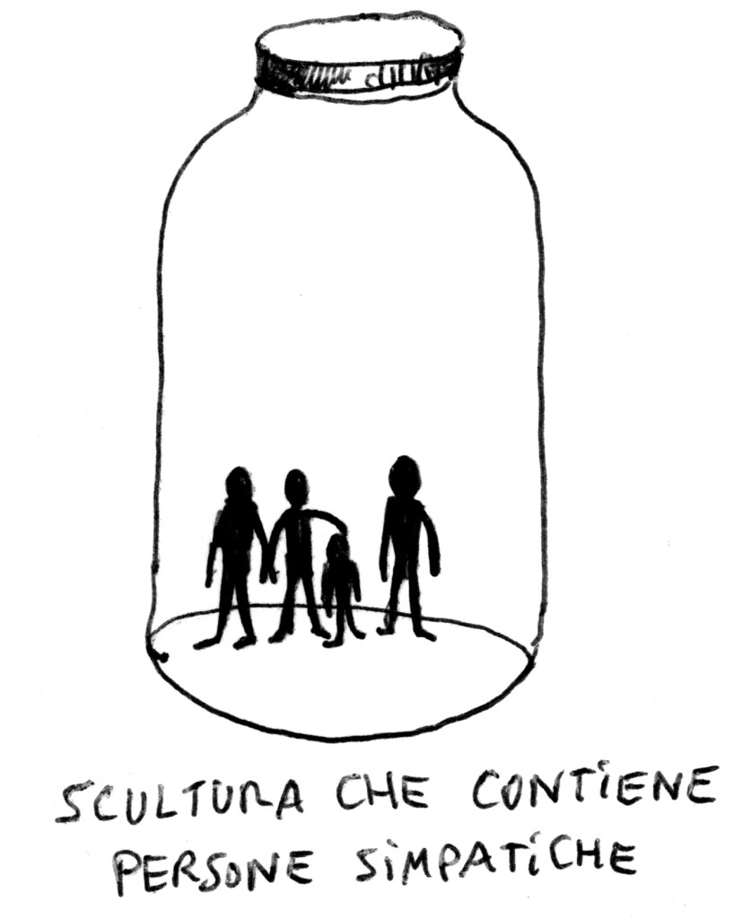 Ti racconto un episodio per farti capire come il disegno per me è stato anche una specie di passepartout per il sistema delle mostre. C’è stato un periodo, avevo vent’anni, che volevo esordire nel mondo dell’arte con una mostra ma nessun gallerista mi dava l’opportunità. Mi dicevano: “Ripassa quando hai fatto almeno una mostra”. Io allora mi inventai la mia mostra di disegni, la cosa più semplice che potessi immaginare. La chiamai mostra istantanea e per realizzarla feci quasi scoppiare casa. Mia madre aveva messo sul forno la pentola a pressione e uscendo mi aveva raccomandato di spegnere il fuoco a una certa ora. Uscii di casa pensando che sarei tornato in tempo, ma mi sbagliavo. Presi con me decine di buste nelle quali avevo inserito lo stesso foglio fotocopiato che riproduceva dei miei disegni. Aprendo la busta la prima cosa che si leggeva era: “Mostra istantanea di Gabriele Picco”. Mi ero segnato tutti gli indirizzi dei più importanti galleristi, critici e curatori d’Italia, trovati sul famoso Art Diary e mi diressi alla buca delle lettere. Le infilai una a una e ogni volta, prima di farla cadere nella buca, rileggevo il nome del gallerista e del critico, come se lo avessi avuto davanti ai mie occhi, e fantasticavo cercando di immaginarmi cosa avrebbe detto davanti ai miei disegnacci. Fu così che persi tempo e arrivai a casa trovando la cucina piena di fumo e mia mamma distesa sul divano con il boccettino di Lexotan tra le mani. Grazie a quelle spedizioni pochi anni dopo esordii con una vera mostra in Viafarini che si intitolava “Disegnacci e disegnini”. L’anno scorso per una mostra ho riempito una parete di 9 metri per 4 di centinaia di disegni su carta da parati. La cosa che mi piace di loro è che non hanno bisogno di sentirsi al passo con i tempi. E i soggetti sono infiniti, dall’uomo felice che ho visto in accappatoio affacciarsi alla finestra, alla microscopica carneficina degli insetti attorno alla mia lampadina.