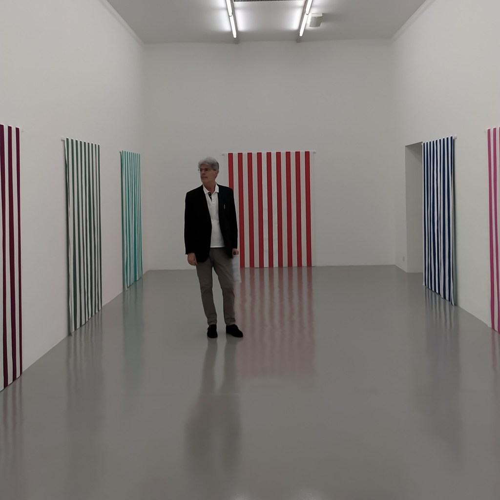 attended the Brera Academy of Fine Arts, from which he graduated in 1974 and where he began teaching painting in 1983. Painting in 1983. In 1992, he obtained the chair of Painting at the Accademia Albertina in Turin and returned to Milan in 2002, at the Brera Academy, to hold the chair of the Painting course. He currently lives and works between Milan and Trento. Since the mid-1970s, his research has revolved around a reflection on the fundamental elements of painting: form and colour. Form is materialised through colour, which is the protagonist and constant focus of his work: given by superimposed layers and by chromatic and luminous contrasts, it creates a sense of transparency and a suggestion of vibrant suspension. Between 1985 and 1987, Bressan directed his research into the structural component of the painting, in which one glimpses, albeit fleeting, of drawing parts, which form a kind of construction: solid architectures, with apparently non-existent contours, highlight the changing support, obtained by the by the assembly of canvases, boards or glass, which further articulate the work’s relationship with space and in which shadows assume a primary role. Drawing is a parallel activity that the artist pursues in constant and autonomous manner with respect to pictorial production. a, Laives (Bz). The artist’s poetics pursue the contrasts between negative and positive, between below and above and between light and shadow, which become predominant towards the end of the 1990s, particularly in those works where the contextual use of contextual use of paper and glass in the support reinforces the colouristic contrast and the concept of double and opposition. The focus on materials and their interaction defines three moments within Bressan’s production and Bressan’s production and, at the same time, outlines the red thread of his research: from painting on wood, the artist moves on to painting on glass, and then glass, before moving in recent years to the use of gauze and veils. Since 2016 in particular the use of tulle, a material material that has always been dear to him, will characterise a series of works entitled Anime, which convey reflections and reconsiderations of his previous works. Over the course of his career, the artist has exhibited in numerous solo shows and important exhibitions: , including including Linee della Ricerca in Italia 1960/1980 at the Palazzo delle Esposizioni in Rome, the 11th Rome Quadriennale (1986) and the 54th Venice Biennale (2011), in the Padiglione Lombardia at Palazzo Te in Mantua, curated by Vittorio Sgarbi; his works have been presented in group exhibitions organised by prestigious institutions, such as the Kunstverein in Frankfurt, the Forum in Hamburg, the Grand Palais in Paris, the Gallery Kodama in Osaka, the Yuzi Paradise in Shanghai, the Institute of Culture in Los Angeles, the PAC in Milan, University of Sidney in Sidney, University Art Museum in Brisbane, the Museum of Contemporary Art in Cavalese, the Galleria Civica in Modena, the Fondazione Bevilacqua La Masa in Venice, the Galleria Civica and Palazzo delle Albere in Trento, the Palazzo della Permanente in Milan, the Galleria d’Arte Moderna in Bologna, the Casa del Mantegna in Mantua. He has also participated in major art fairs, including Art Basel in 1989 and 1992.