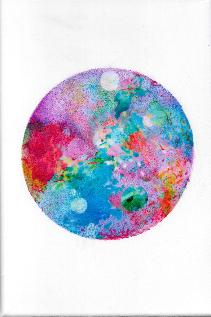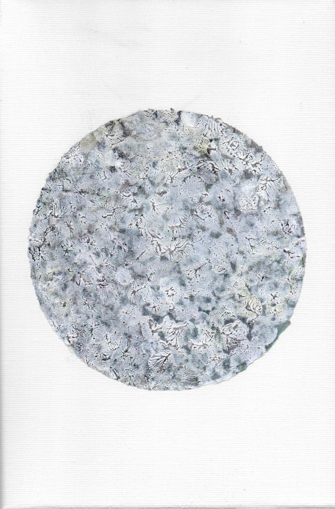 Sotto il selciato c’è la spiaggia, 2023. Tecnica mista su cartone telato, 30×20 cm. (dalla performance del 24 febbraio 2023)