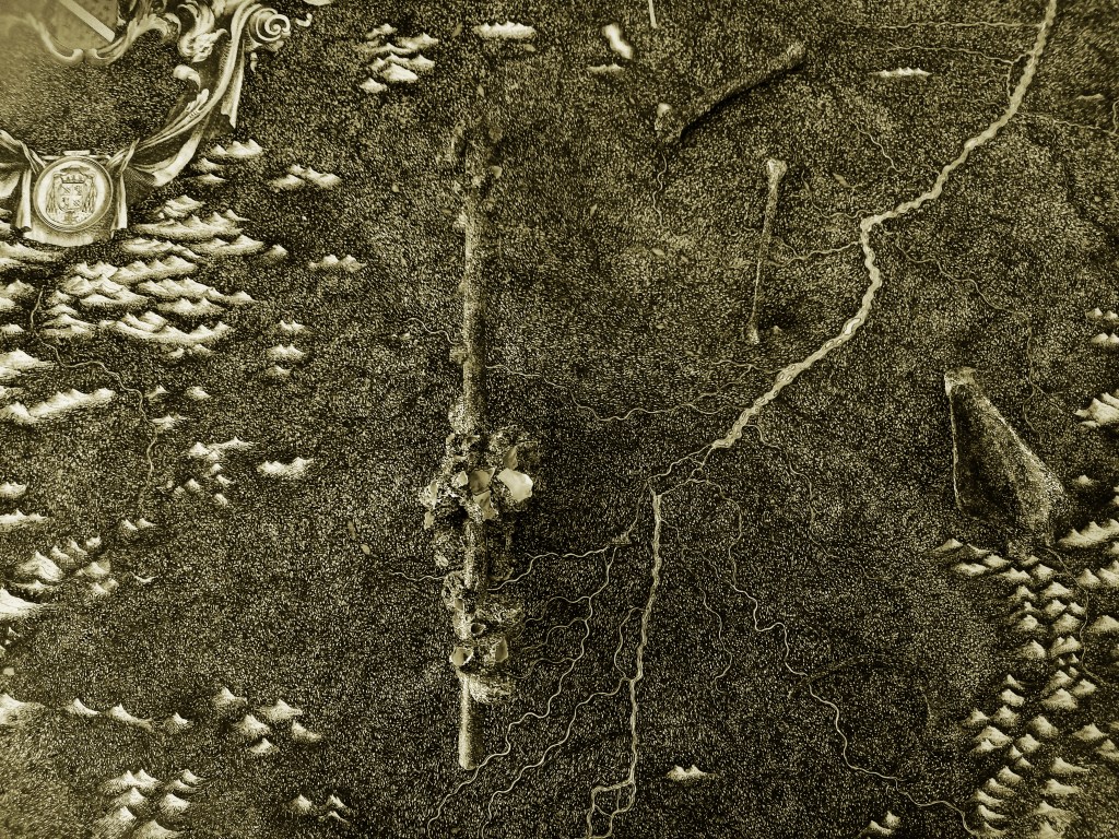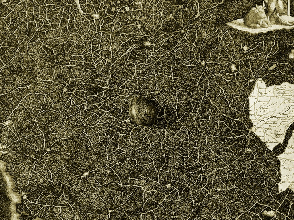 Marco Acquadredda: I have never asked myself whether all artists come to terms with black, but there are, and it is true, those who have a privileged relationship with this colour. Personally, I have always had a natural dialogue with this ‘medium’, which cyclically returns in my artistic research. For me, black has a close connection with the sense of writing: writing black on white is the will to be clear, to proceed in writing carries in itself, as an act, the sense of narration. I do not like the ‘graphic’ meaning of the use of black, while I like the idea that colour is the absence of light and at the same time, conversely, the sum by mixture of all colours. He who is afraid of the dark understands well the discomfort of the unknown and the absence of the perception to which we entrust most importance, but I remember that darkness is also the refuge in the womb, a safe and ‘creative’ moment par excellence. I was very impressed, years ago, when I was told that black is not used in many techniques because of the chromatic value that goes badly with other colours. In my research so far, black has been a visible trace that seeks its place in a space, sometimes as a minimal unit, sometimes occupying it entirely, and certainly its use, in an elitist sense, practically simplifies the realisation of a work. “Maneggiare ombre” (Handling shadows), on the other hand, is a recent work of mine, the latest in a series of my investigations that I have been working on for a few months now. My attempt, in this ‘blackness’ of mine, is the practice, perhaps ‘maniacal’, with which I attempt to physically describe the behaviour of light, hence shadow, on a real surface. Describing a creative process is a complex thing, it happens sometimes starting with suggestions or ideas, other times with needs or urgencies so intimate or profound that they can only be guessed at, and perhaps only in part at the end of the work itself. The vision of some of Seurat’s drawings acted as a trigger for me: the description of figures and landscapes by masses of shadow and light gave me a strong sensation, it is the texture of the paper that makes the signs that make up these seemingly simple compositions vibrate. It was not my intention to copy his work, I would say that after this encounter, as in a dialogue, I had to respond to Seurat, in my own way. Looking for a different relationship with the space of drawing, I had already been experimenting for a while with rapidographs, Indian ink pens dating back to the 1990s, casually found in a warehouse fund with which I covered natural objects (walnuts and other small objects) following the roughness of their ‘skin’, trying to describe on them, physically, the behaviour of a shadow, thus blackening some parts of them or totally according to the criterion of the moment, tracing the small and narrow real spaces. I felt I had to go further, and so it was that the discovery of certain European maps, etchings from the late 17th century, provided the stage for a further place on which to intervene. In this new context, the concept of time was added to space and light, as with repeated marks I filled in, as in the game “blacken the dots”, every written reference, erasing memory and consigning to oblivion the work traced by unknown engravers of the time, hour after hour, day after day, week after week. The maps were thus partly returned to nature, taking care to leave the mountains, roads, towns, lakes and rivers behind… the maps, now mute, are now susceptible to new interpretations, passing from aerial visions to nocturnal views of thick cobwebs and starry skies. Once the cards were finished, the natural elements described above (tortoise shells, snails, wood encrusted with baleen, badger bones and more) were placed on them, thus creating a short-circuit between drawn reality and fiction: reality and fiction meet in a mise-en-scene where the whole world is redrawn and the composition seems to merge and, in the end, still merge. I would like to end this story by paraphrasing the quotation from what is considered Hokusai’s spiritual testament, which in the colophon of the Hundred Views of Mount Fuji intends to manifest the human impossibility of being able to trace and redraw all the “things” of the world; only now do I realise, with all humility, that with my “Nocturnes” I have reiterated the same thought and with it the wonder from the micro to the macrocosm of everything that surrounds us.