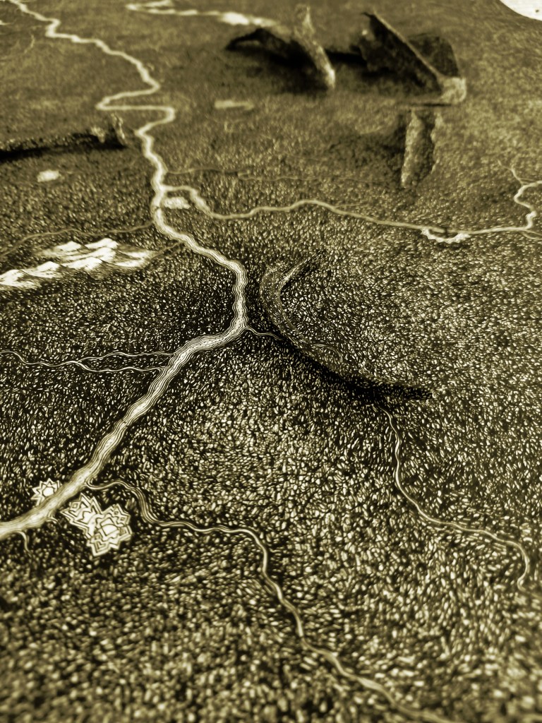 Marco Acquadredda: Non mi sono mai chiesto se tutti gli artisti fanno i conti con il nero, ma c’è, ed è vero, chi ha un rapporto privilegiato con questo colore. Personalmente ho sempre dialogato con naturalezza con questo “medium”, che ciclicamente ritorna nella mia ricerca artistica. Il nero ha per me uno stretto legame con il senso della scrittura: scrivere nero su bianco è la volontà di essere chiari, procedere nella scrittura porta di per sé, come atto, il senso della narrazione. Non mi piace l’accezione “grafica dell’uso del nero, mentre mi piace l’idea che il colore sia l’assenza di luce e allo stesso tempo, di contro, la somma per mescolanza di tutti i colori. Chi ha paura del buio intende bene il disagio dell’ignoto e l’assenza della percezione a cui affidiamo maggior rilevanza, ma ricordo che l’oscurità è anche il rifugio nel grembo materno, momento sicuro e “creativo” per eccellenza. Mi rimase molto impresso, anni fa, quando mi fu detto che il nero in molte tecniche non viene utilizzato a causa del valore cromatico che male si accorda con le altre cromie. Il nero è stato nella mia ricerca, finora, una traccia visibile che cerca il suo posto in uno spazio, talvolta come unità minima, talvolta occupandolo interamente, e di certo il suo utilizzo, in senso elitario, semplifica praticamente la realizzazione di un lavoro. “Maneggiare ombre” è invece un mio lavoro recente, l’ultimo di una serie di mie indagini ancora in divenire a cui sto lavorando da alcuni mesi. Il mio tentativo, in questo mio “nero” è la pratica, forse “maniacale”, con la quale tento di descrivere fisicamente il comportamento della luce, quindi dell’ombra, su di una superficie reale. Descrivere un processo creativo è cosa complessa, capita talune volte di partire da suggestioni o idee, altre volte con bisogni o urgenze tanto intime o profonde da poterle intuire e forse solo in parte al termine del lavoro stesso. La visione di alcuni disegni di Seurat mi ha fatto da innesco: la descrizione di figure e paesaggi per masse di ombra e luce mi ha restituito una forte sensazione, è la trama della carta che fa vibrare i segni che compongono queste apparenti semplici composizioni. Non è stata mia intenzione copiarne il lavoro, direi che dopo questo incontro, come in un dialogo, dovessi rispondere a Seurat, a modo mio. Cercando relazioni diversa con lo spazio del disegno era già da un po’ che mi cimentavo con dei rapidograph, penne a china risalenti agli anni’90, ritrovati casualmente in un fondo di magazzino con i quali ho ricoperto oggetti naturali (noci e altri piccoli oggetti) seguendo le asperità della loro “pelle”, cercando di descrivere su di essi, fisicamente, il comportamento di un’ombra, quindi annerendo alcune parti di esse o totalmente secondo il criterio del momento, ripercorrendo i piccoli e angusti spazi reali. Sentivo di dover procedere oltre, ed è così che il ritrovamento di certe mappe europee, acqueforti della fine del ‘600, sono state il palcoscenico di un ulteriore luogo su cui intervenire. In questo nuovo contesto, allo spazio e alla luce si è aggiunto il concetto di tempo, dato che con segni ripetuti ho riempito, come nel gioco “annerire i puntini”, ogni riferimento scritto, cancellando la memoria e consegnando all’oblio il lavoro tracciato da ignoti incisori dell’epoca, ora dopo ora, giorno dopo giorno, settimana dopo settimana. Le mappe sono state in parte così restituite alla natura facendo attenzione a lasciare i monti, le strade, le città, i laghi e i fiumi… le carte, oramai mute, sono adesso suscettibili a nuove interpretazioni passando da visioni aeree a notturni di fitte ragnatele e cieli stellati. Terminate le carte gli elementi naturali descritti in precedenza (guscio di tartaruga, chiocciole, legni con incrostazioni di balani, ossa di tasso e altro) sono stati poggiati su di esse creando così un cortocircuito tra reale disegnato: realtà e finzione si incontrano in una messa in scena dove tutto il mondo è ridisegnato e la composizione sembra fondersi e alla fine, ancora confondersi. Vorrei terminare questo racconto parafrasando la citazione di quello che è considerato il testamento spirituale di Hokusai, che nel colophon delle Cento vedute del Monte Fuji intende manifestare l’impossibilità umana nel poter tracciare e ridisegnare tutte le “cose” del mondo; solo adesso mi rendo conto, con tutta l’umiltà del caso, di aver ribadito con i miei “Notturni” il medesimo pensiero e con esso la meraviglia dal micro al macrocosmo di tutto quello che ci circonda.