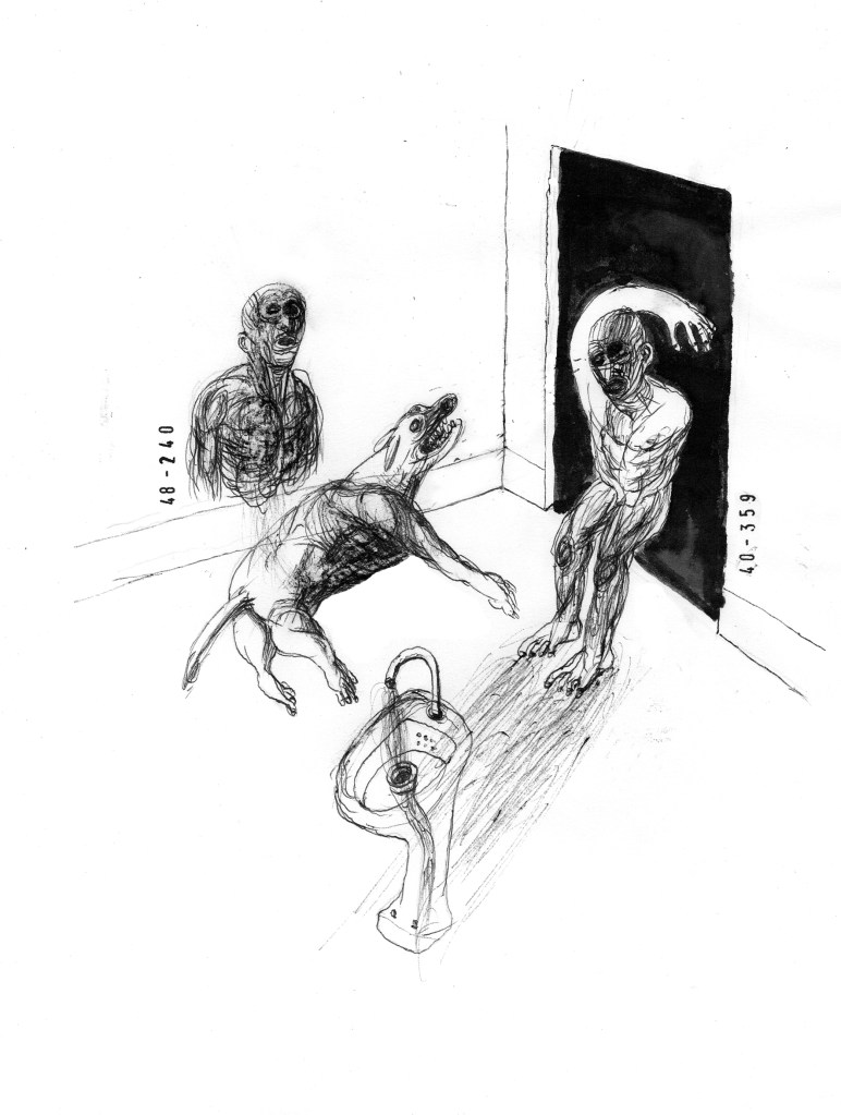 Così il disegno mi permette di improvvisare, più è improvvisato e rapido e più è vivo. E più mi piace. Ci devo mettere un po’ di crudeltà, per così dire. È imporre un segno, secco. Enzo Cucchi dice “l’importante è segnare; nei segni deve depositarsi qualcosa che ha a che fare con la storia, la responsabilità, l’etica.” E sempre a proposito del segno/disegno Cucchi dice “[…] ri-immaginare un’immagine. Questo significa segnare; questo significa disegnare.” È una cosa importante. Alla luce di tutto questo rivedo quello che ho fatto e penso che potrebbe essere il preludio per qualcosa di più serio, di più approfondito, che potrebbe andare da qualche altra parte, ma dove di preciso non lo so, o non voglio saperlo. Allora il disegno resta pensiero (vago) o non-pensiero (ancora meglio) e va bene così, mi arrendo al segno, al disegno e a me stesso.
