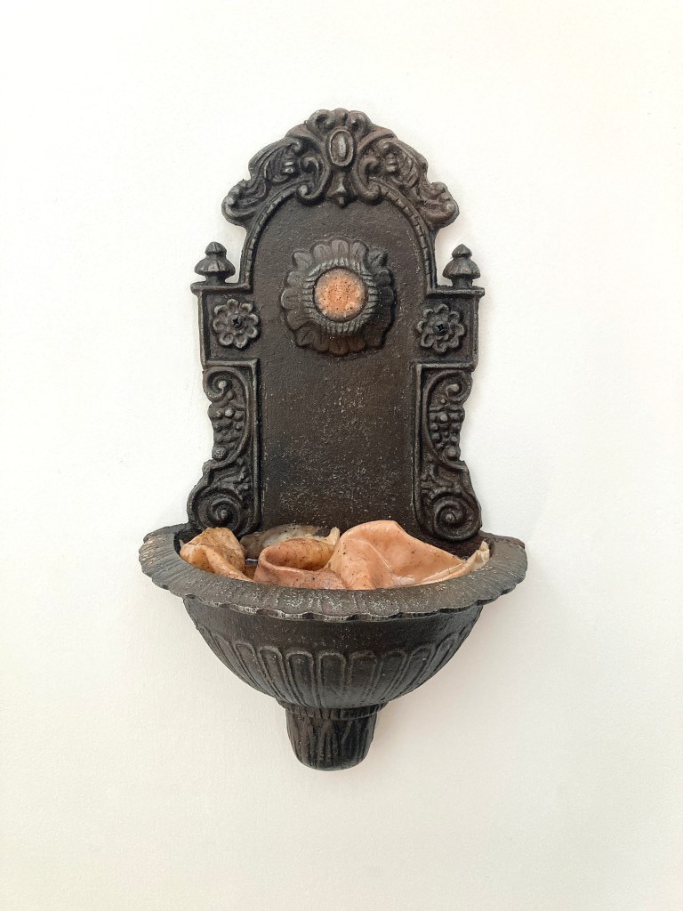 Acquasantiera, biomateriale, peli umani, spezie e resina