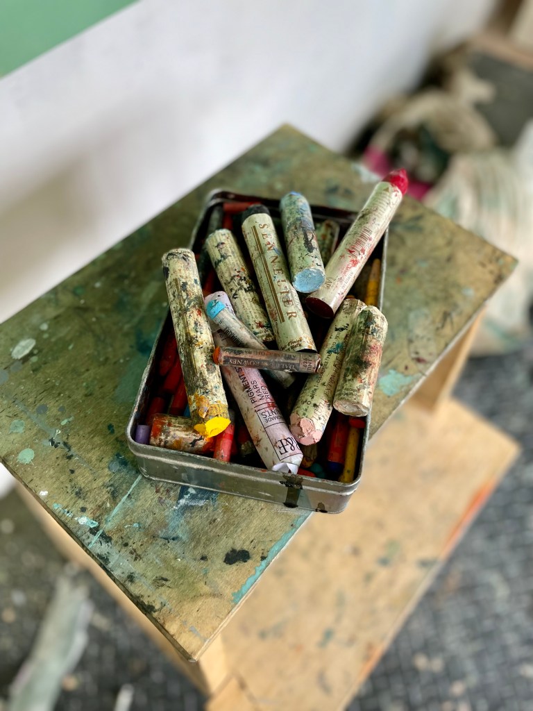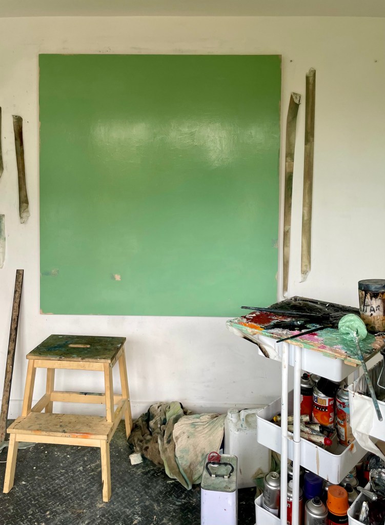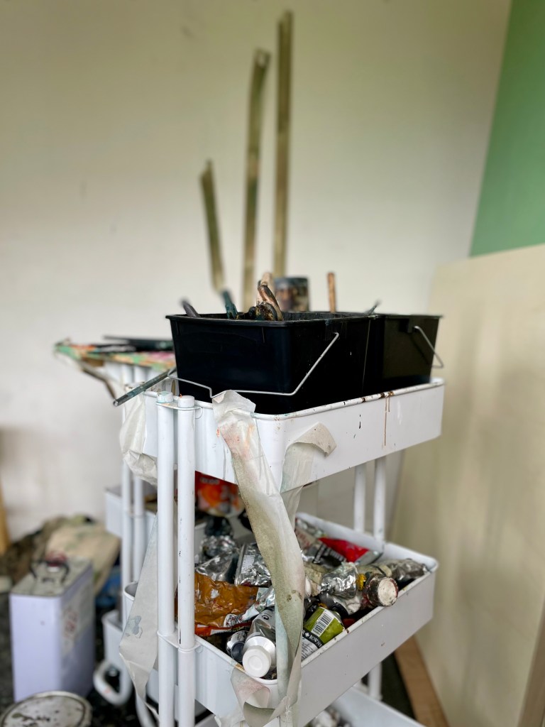 Credo che la maggior parte delle persone percepisca lo studio di un artista come uno spazio romantico, ma il mio è caotico e disordinato!