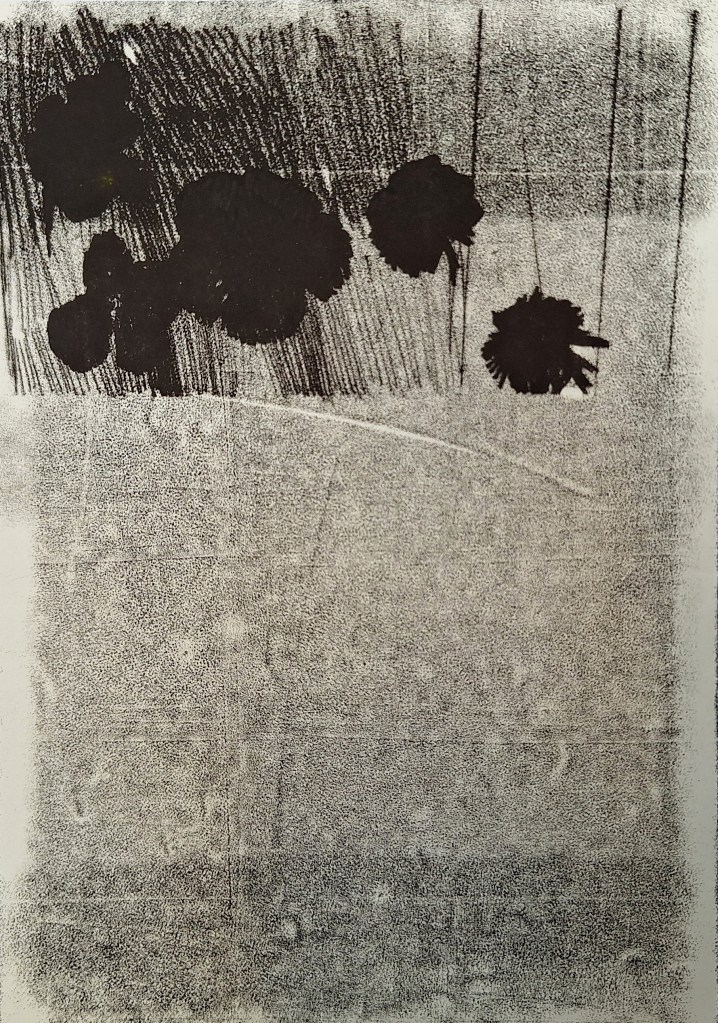 La pittura, sia essa eseguita su carta o su tela, mantiene una severa scansione cromatica dal bianco al nero, ma si arricchisce di tonalità di grigi, talvolta colorati, che campiscono la superficie in modo più libero, in cui il segno e le forme ad inchiostro o a graffite e carbone, si espandono con passaggi di grigi più modulati e trasparenze tonali, facendo da contrappunto al carattere più incisivo e controllato del disegno.