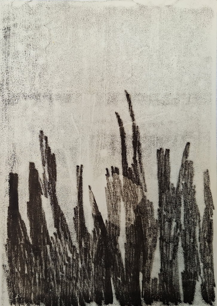 Il mio modo di procedere vede due momenti fondamentali che si alternano: da una parte il disegno e dall’altro la pittura. Entrambi sono sviluppati a partire dagli stessi strumenti, ovvero inchiostro e pigmenti di ardesia e carbone, ma con una differenza sostanziale: i disegni sono realizzati su carta, solitamente di piccolo formato e si presentano come linee, segni, forme dal forte impatto visivo che animano la superficie con l’intento di comprendere e fare esperienza dello spazio, della sua struttura, dell’equilibrio tra presenza e assenza, pieno e vuoto nei suoi più severi contrasti.