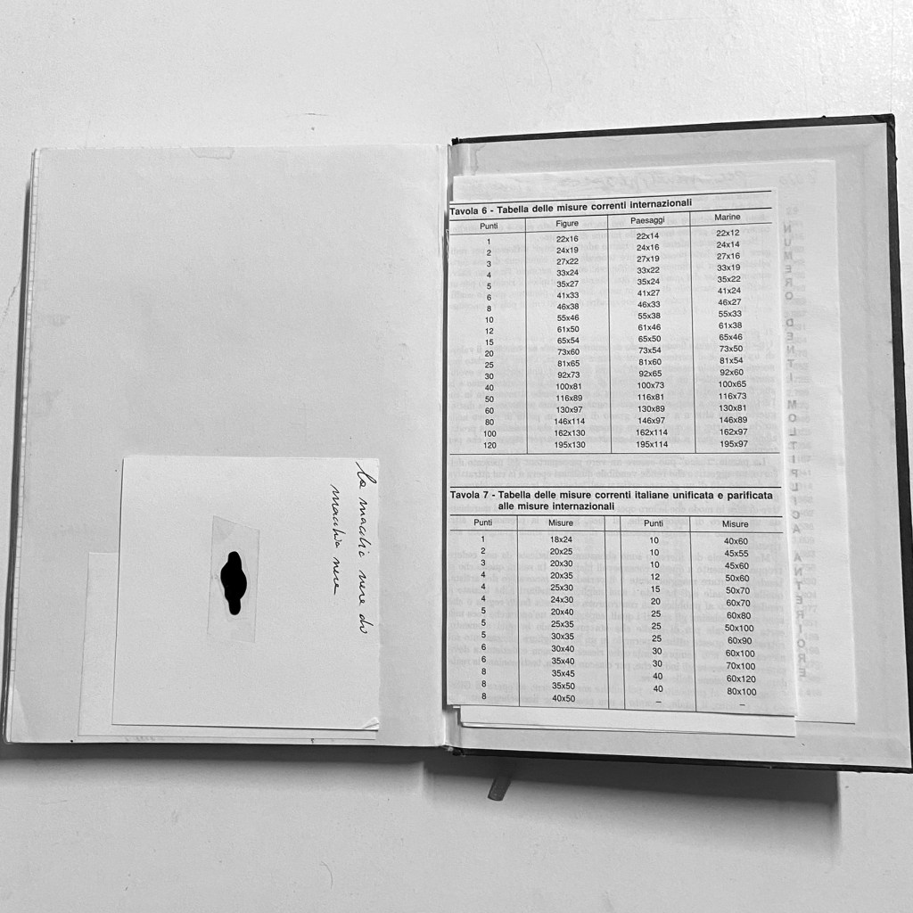 Paradoxically, I really enjoy making these small post meditations around the works, as much as I get bored with the practice of drawing the classic copy from life. I have archived dozens of diaries with hundreds and hundreds of small drawings of my works, miniature translations, micro-drawings, quick little impressions of their form, with their measurements, with their ideal location in space, with the possible relationships between the various works, this also with small accents of colour, a colour that is always muted, drab, diaphanous, the title and little else.