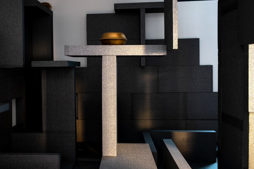 Gisella Chaudry Reflections on BLACK Black is the place where mediation with light ceases and the horizon becomes dense matter with which a dialogue is inevitable. It is probably a starting point from which mediation with colour arises because once its absorbent and warm nature is understood, the elements it retains emerge to find a concrete body that has within it the residue of the primordial. The confrontation with this state in artistic research marks a condition of totality, black as the origin of all things and black as the end of all things. It is not necessarily a colour, it can be an atmosphere, a sound, a sensation, if one is always dealing with light and its visual clarity what drives one’s curiosity into the shadows is precisely its mystery because something is hidden in the darkness of states of mind and often what one cannot see is more meaningful to understand. Black is the fundamental part of all existence and in my case an exploratory necessity.