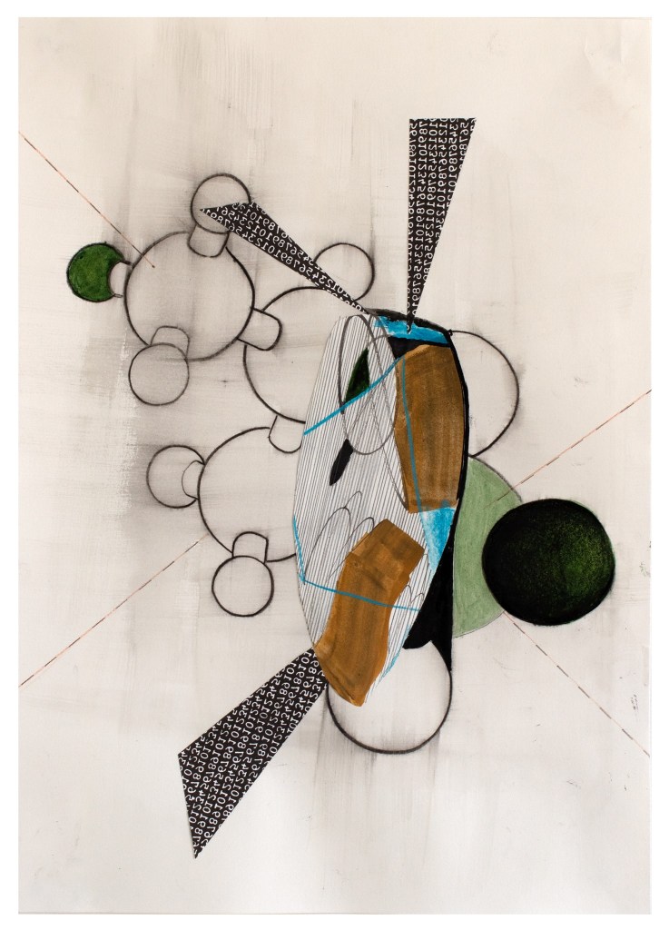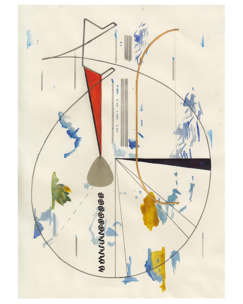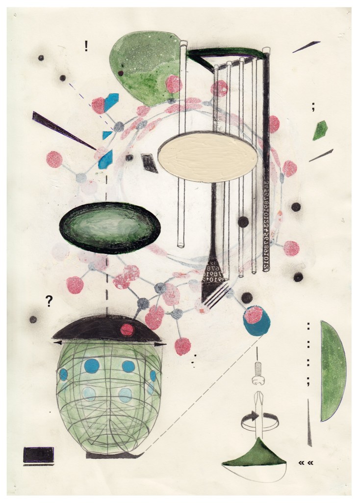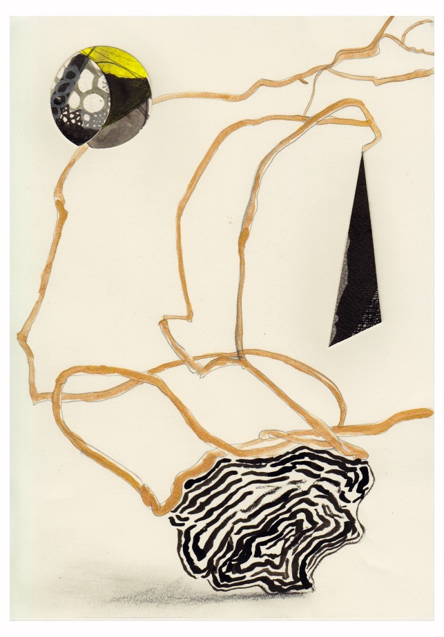 Pencil, gouache, ink, caligraphy ink and collage on paper