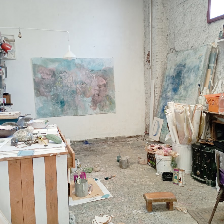 My studio is not big but it is big enough to accommodate me with everything I need. It is a small industrial shed, bordering an urbanised green area, which I have been sharing for many years with other artists with whom I exchange ideas, information and projects. For me, the studio is a space for research and experimentation where an idea or an intuition takes shape, but it is also a mental space, a space of thought, a suspended and ritual place, an archive – container where the work of so much time is added up by layering experiences.