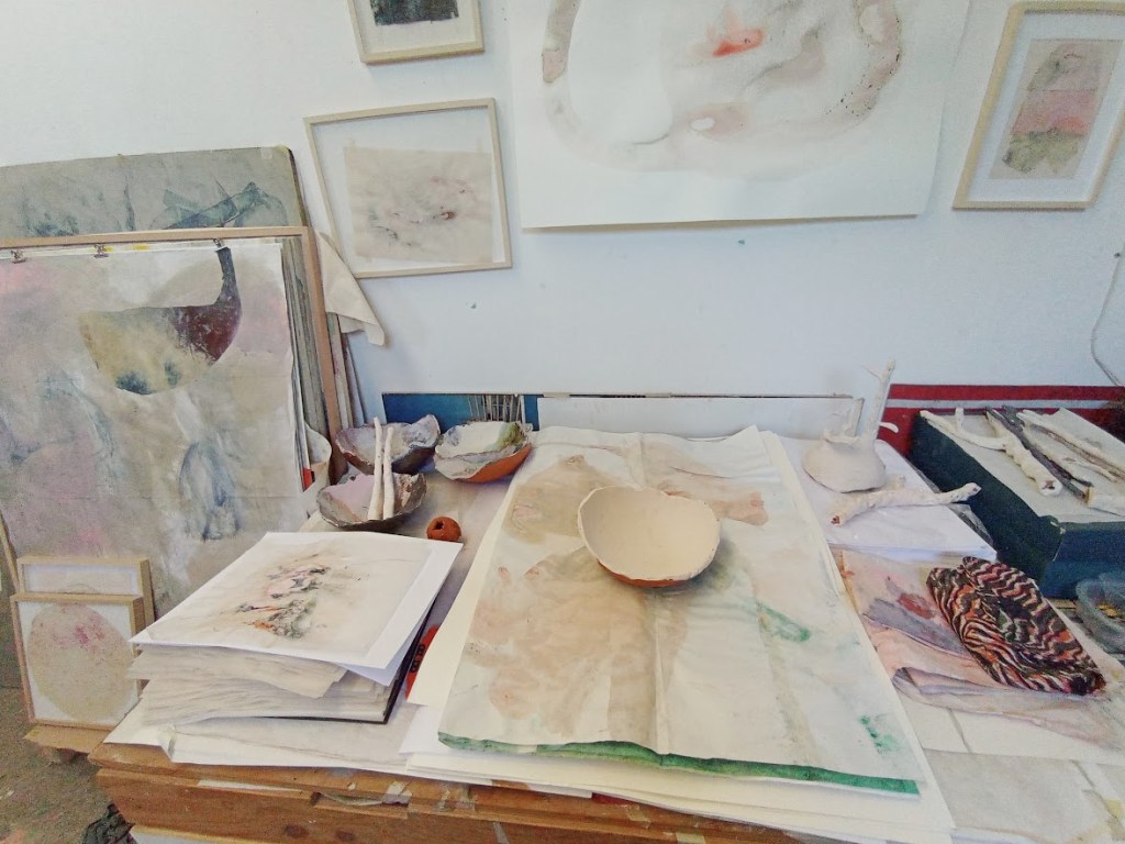 Il mio studio non è grande ma è sufficiente a ospitarmi con tutto ciò che mi serve. E’ un piccolo capannone industriale, al confine con una zona di verde urbanizzata, che da molti anni condivido con altri artisti con cui scambio idee, informazioni e progetti. Per me lo studio è uno spazio di ricerca e sperimentazione dove un’idea o un’intuizione prendono forma, ma è anche uno spazio mentale, del pensiero, un luogo sospeso e rituale, un archivio – contenitore dove il lavoro di tanto tempo si somma stratificando esperienze.