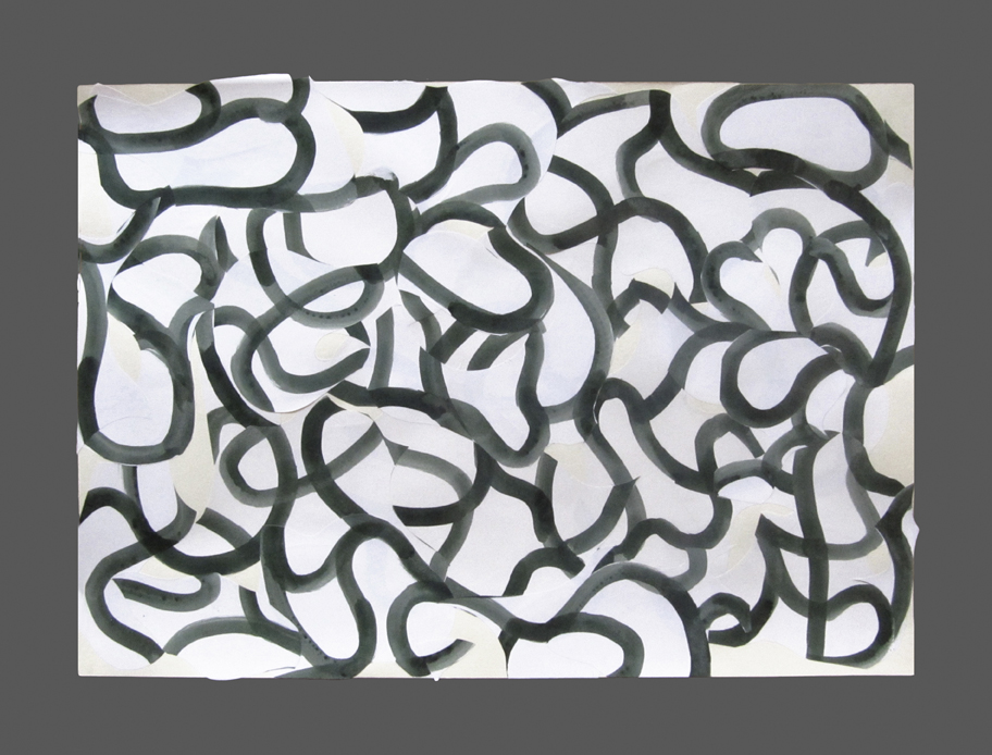 La relazione tra la linea e la forma che si sviluppa sul supporto è cruciale. Pertanto ho voluto ridurre al minimo gli aspetti descrittivi e progettuali della linea stessa. Utilizzando forme di supporto casuale, ho creato segni in equilibrio che ripartiscono spazi armonici.