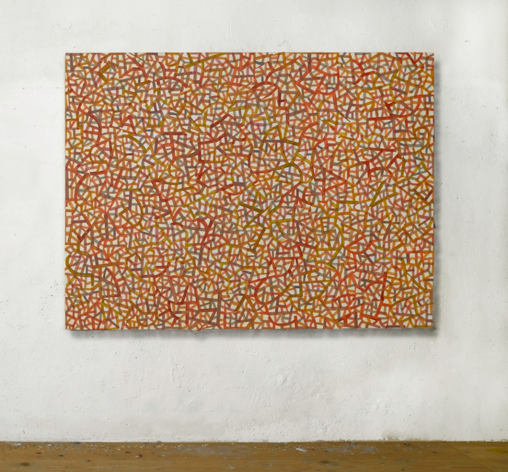 Since the beginning of my career, I believe I have travelled through abstraction from its more ‘abstract’ connotations (Kandiskian, to give us an example) to its more ‘concrete’ ones (Mondrian, again to give us an example), from evanescent and improbable images based on colour (which hints at a drawing from the 1980s), I have moved on to constructing improbable images based on the line that is colour and drawing in our day.