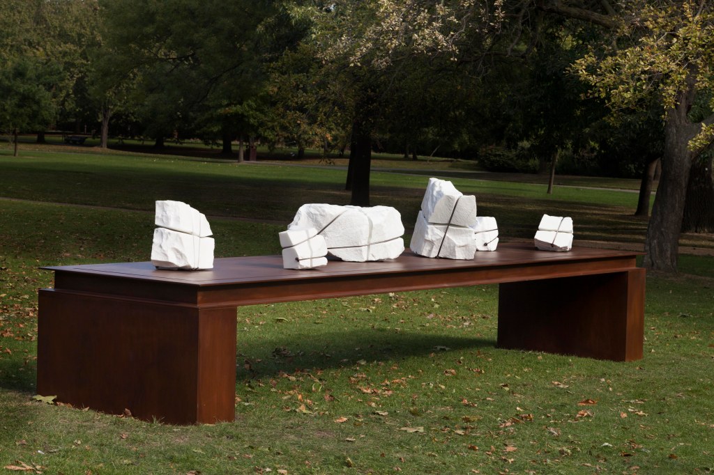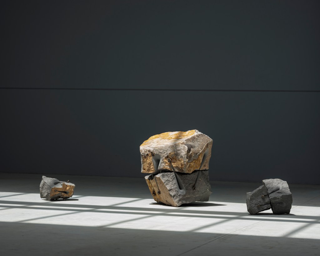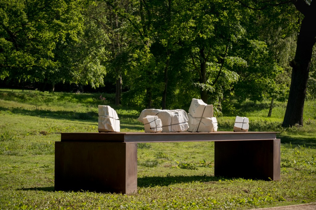 P.d’A.:Does this double channel or double bond also manifest itself in your work through the steel cables that bind the stone blocks together?